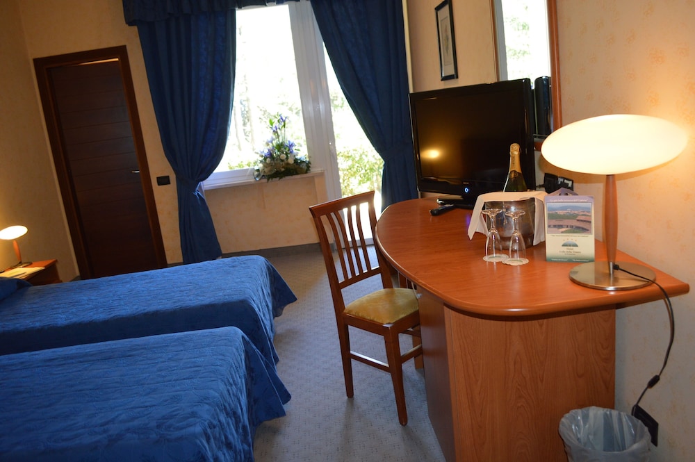Surrounded by a green park overlooking the area of Perugia Valley, the hotel is located on the top of the most scenic hill of Perugia, in the heart of Umbria. This hotel is situated amongst the green Umbrian hills with panoramic views of historic Perugia and surrounding area. The location of the Hotel, in the residential district of Fontana and in the heart of an area of protected countryside, makes it the perfect place for a peaceful and relaxing holiday, in elegant surroundings.Every room detail in our rooms, from blankets to coordinate sheets, has been carefully analyzed selected in order to convey elegance, while mattresses and pillows has been chosen and selected to ensure our guests a high level comfort. It offers with a rich breakfast with pastries, freshly baked bread and other homemade food. The restaurant offers a fine selection of grilled fish and other traditional meals, served in a scenic location.The hotel is a great base for many cultural and artistic experiences, with Perugia just 9 km away.