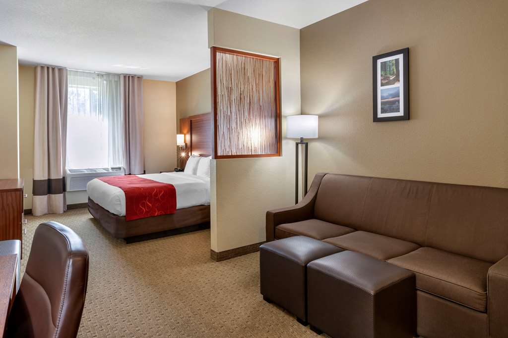 With a stay at Comfort Suites Eugene in Eugene, you'll be convenient to Hendricks Park and Matthew Knight Arena. This hotel is within close proximity of Dorris Ranch and Museum of Natural History.Rooms Make yourself at home in one of the 67 air-conditioned rooms featuring refrigerators and flat-screen televisions. Your room comes with a pillowtop bed, and all rooms are furnished with sofa beds. Cable television is provided for your entertainment. Bathrooms have complimentary toiletries and hair dryers. Be sure to enjoy recreational amenities, including an indoor pool, a spa tub, and a fitness center. Additional features include complimentary wireless Internet access and a fireplace in the lobby.Dining A complimentary buffet breakfast is served daily.Business, Other Amenities Featured amenities include complimentary high-speed (wired) Internet access, a 24-hour business center, and express check-in. Planning an event in Eugene? This hotel has 425 square feet (39 square meters) of space consisting of a conference center and meeting rooms. Free self parking is available onsite.