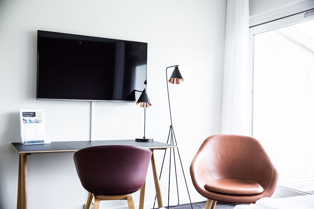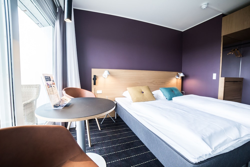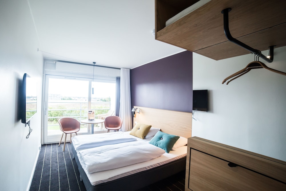 The hotel is located on the island of Funen in Middelfart at the Little Belt, between Funen and Jutland. The hotel is situated in the vicinity of the E20 motorway, approximately 500 m from the motorway exit, making it easily accessible to guests arriving by car. The centre of the town of Middelfart is a 30-minute walk away from the hotel. Restaurants, bars, public transport connections and shopping opportunities, as well as the bus station and railway station, can all be found around 3 km away. The coast and a forest can each be found around 600 m away. Guests can reach Odense in around 30 minutes by car or by public transport. Egeskov Castle is approximately 45 km away and Legoland is about 55 km away.This is a modern hotel with bright and modern decor. All public areas are decorated with large and colourful paintings. The city hotel comprises a total of 124 rooms. Guests are welcomed in the lobby, which offers a 24-hour reception and a 24-hour check-out service, as well as a hotel safe, currency exchange facilities and lift access to the upper floors. Guests can enjoy a drink at the bar, and dine in the restaurant. Conference facilities are available to business travellers. Guests can enjoy the convenience of Internet access. They can also take advantage of the room and laundry services. Those arriving by car may leave their vehicles in the hotel car park.The rooms are bright and feature work desks. All rooms come with an en suite bathroom with a shower and a hairdryer. Guests can enjoy a good night's rest on their double bed. Rooms also come equipped with a direct dial telephone and radio. Standard in-room amenities include satellite/cable TV and Internet access. Furthermore, tea and coffee making facilities and heating are provided in all accommodation as standard. Each room features a balcony or terrace. Family rooms are also available and are large with a sofa bed for children.