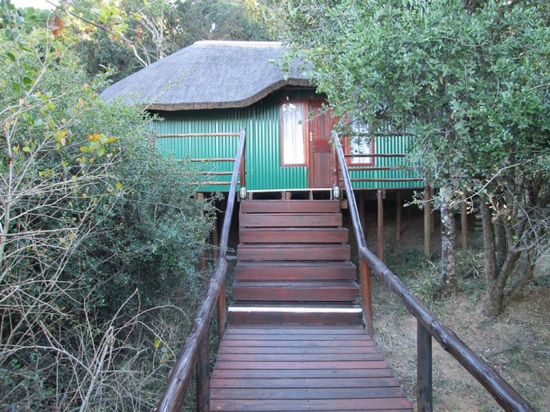 Situated just 20 minutes on the East London side of Grahamstown, approximately halfway between Durban and Cape Town, Coombs Cottage is a four bed, self-contained, thatch cottage, nestled in amongst secluded Eastern Cape valley-forest. A unique and special stopover, the farm is teeming with a variety of bird species and small game and is an ideal retreat for nature lovers. The Cottage comprises a double room, with en-suite shower and toilet, an open plan kitchen, dining and living area, and children's/guest toilet, with two single beds situated in the living area. The Co