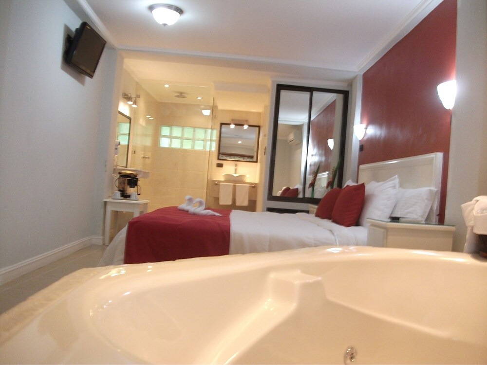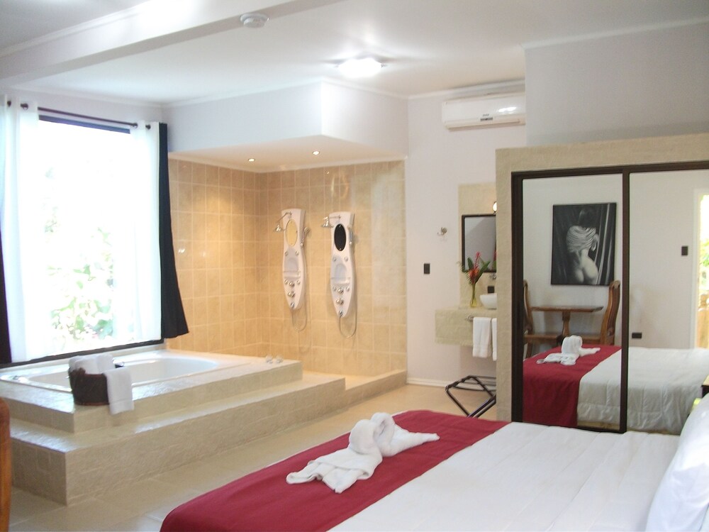 With a stay at Copacabana Hotel And Suites - Adults Only, you'll be centrally located in Jaco, steps from Jaco Library and Learning Center and minutes from Jaco Beach. This beach hotel is within close proximity of Teatro Jaco and Neo Fauna.Rooms Make yourself at home in one of the 38 individually decorated guestrooms, featuring refrigerators and minibars. Your Select Comfort bed comes with down comforters. Flat-screen televisions with cable programming provide entertainment, while wireless Internet access (surcharge) keeps you connected. Private bathrooms with bathtubs or showers feature complimentary toiletries and hair dryers.Amenities Relax at the full-service spa, where you can enjoy massages, body treatments, and facials. You're sure to appreciate the recreational amenities, which include 2 outdoor swimming pools and a nightclub. Additional amenities at this hotel include complimentary wireless Internet access, concierge services, and gift shops/newsstands.Dining Grab a bite at one of the hotel's 2 restaurants, or stay in and take advantage of room service (during limited hours). Relax with your favorite drink at a bar/lounge or a poolside bar. Cooked-to-order breakfasts are available daily for a fee.Business, Other Amenities Featured amenities include a business center, dry cleaning/laundry services, and multilingual staff. A roundtrip airport shuttle is provided for a surcharge (available 24 hours), and free self parking is available onsite.