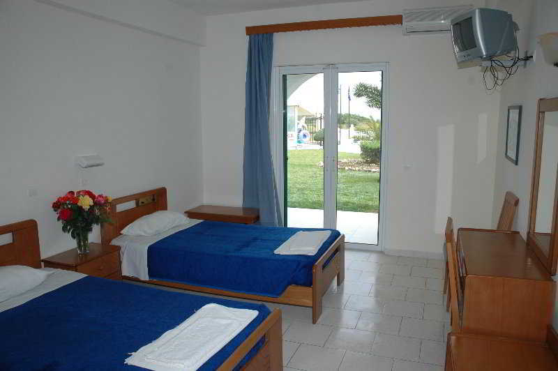 Situated on the endowed with natural beauty island of Corfu, this impressive hotel is a perfect place to spend a sunny holiday in a laid-back atmosphere. Close to Corfu Town's historical landmarks, this marvellous beach hotel greets families, couples and everyone looking for quality accommodation. The property is set within easy reach to local businesses and entertainment venues. This impressive establishment is sure to enchant guests with modern facilities and excellent services. The guestrooms offer a peaceful refuge to all those who need to rest after a long day of work or sightseeing. Each room comes complete with modern amenities to guarantee a memorable stay. Guests may dine on regional specialties and then enjoy a drink and chat with friends at the on-site bar. Children will be delighted in a paddling pool and entertainment programme. On warm days guests may enjoy a dip in a swimming pool or play tennis.