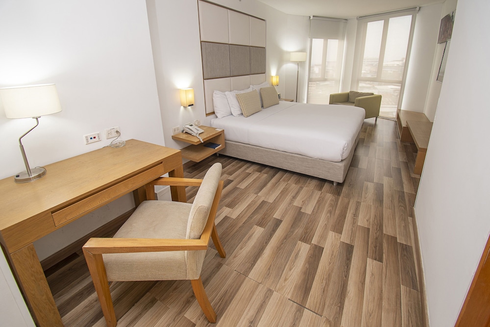 The stylish Cosmos Cali Hotel is strategically situated in the north of Cali in Colombia, close to the Club Colombia and across the emblematic Torre de Cali. The Valle del Pacífico convention centre, the financial district and the Valle del Cauca industrial area can be reached within a 20-minute drive. The Centenario shopping centre, the Gold Museum and the restaurants and bars of the Granada district are within a short stroll.The functional, small hotel has a fresh and dynamic contemporary design. The well-appointed guest rooms are very bright and clean, and they are equipped with individually controlled air-conditioning, complimentary wired & wireless internet access as well as flat-screen cable-/satellite-TV. The meeting facilities and an airport shuttle service. In the morning, the on-site restaurant serves a complimentary buffet breakfast. An ideal choice for business travellers.The establishment is not suitable for people with reduced mobility, although it has an elevator it is located between floors.If you are traveling with children, you may need to present new documents at the establishment. Parents who travel to Colombia with children under the age of 18 may need to present the child's birth certificate and their photo ID at the time of check-in. If the minor is accompanied by a family member or guardian, the minor must present a certified travel authorization signed by both parents, in addition to a copy of the parent's document. If the child travels alone with his / her parents, it is possible that the child must present a travel consent certified and signed by the other parent.