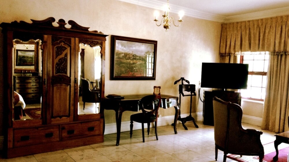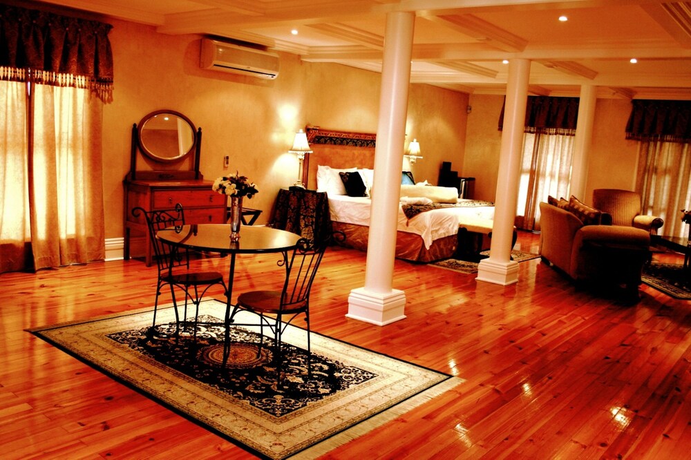 With a stay at Cricklewood Manor in Pretoria, you'll be in a shopping district and convenient to Brooklyn Mall and University of Pretoria. This 5-star guesthouse is within close proximity of Waterkloof Golf Club and Austin Roberts Bird Sanctuary.Rooms Make yourself at home in one of the 30 individually decorated guestrooms, featuring refrigerators and minibars. Your room comes with a Tempur-Pedic bed. 32-inch LED televisions with satellite programming provide entertainment, while complimentary wireless Internet access keeps you connected. Private bathrooms have complimentary toiletries and hair dryers. Enjoy recreation amenities such as a seasonal outdoor pool or take in the view from a garden. Additional amenities at this Tuscan-style guesthouse include complimentary wireless Internet access, concierge services, and tour/ticket assistance.Dining Enjoy a satisfying meal at a restaurant serving guests of Cricklewood Manor.Business, Other Amenities Featured amenities include complimentary high-speed (wired) Internet access, a business center, and dry cleaning/laundry services. Event facilities at this guesthouse consist of a conference center and meeting rooms. A roundtrip airport shuttle is provided for a surcharge (available on request), and free self parking is available onsite.