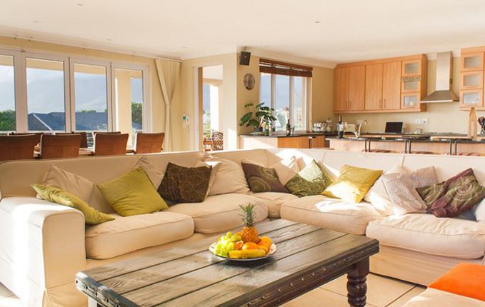 The house can be rented as a whole on a self-catering basis for up to 18 guests; an additional R200 when over 16 people requested. Guests must enquire about the house rate.Nestled between the tranquil Sandbaai shoreline and the towering Fynbos covered Onrust Mountains, this modern and sophisticated property is perfectly situated in an area unsurpassed in its natural beauty. Make Crimson Views your base and explore the many exciting activities that wait upon your doorstep. This fully equipped house offers luxurious open-plan living. The expansive living area leads out on