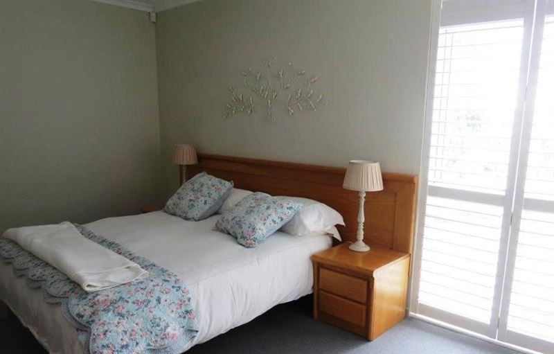 There is an en-suite bathroom, built-in wardrobe with plenty of drawers, and DStv. Sliding glass doors lead out to a large wrap-around patio, which affords expansive views of the ocean and the magnificent mountain backdrop.