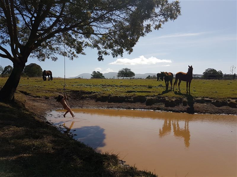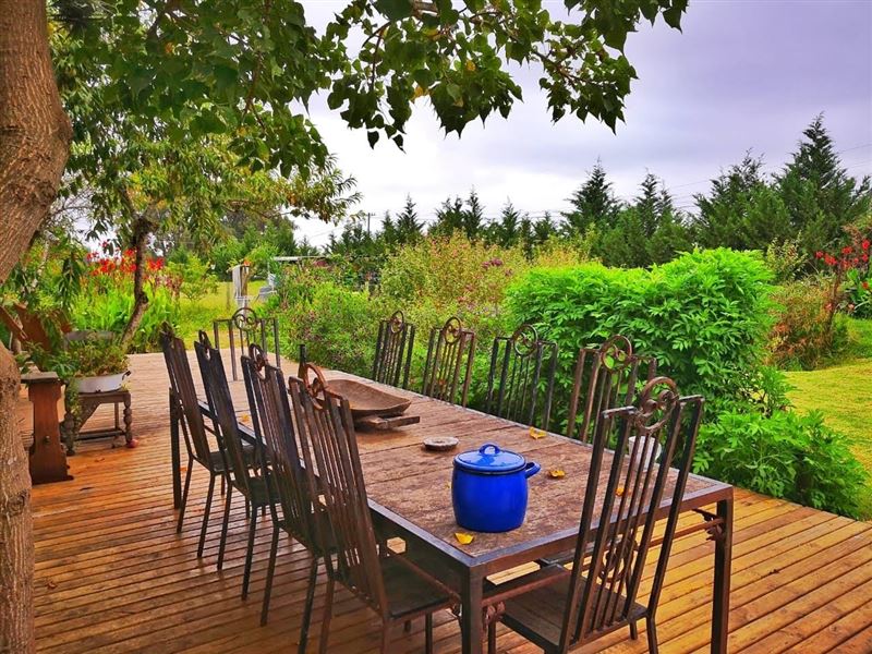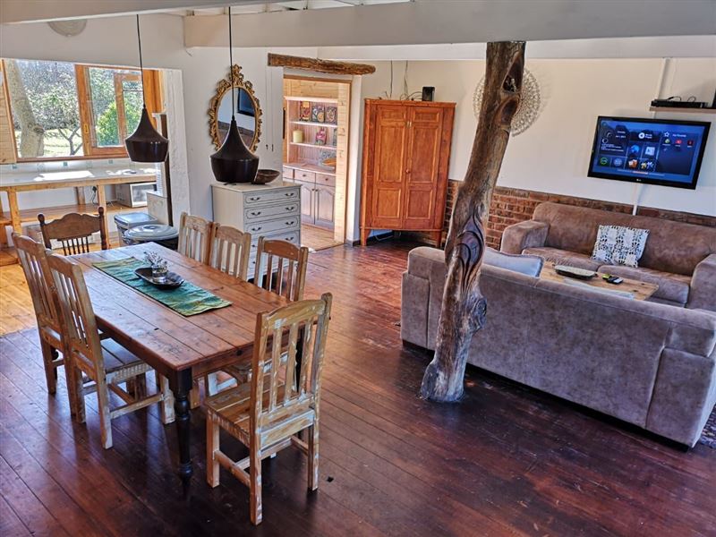 PET FRIENDLY - Live the dream on our horse ranch at the base of the magestic Outiniqua mountains. With hundreds of kilometers of mountain and forest trails at your doorstep.Here you can relax, party and just enjoy a special stay with friends and family including your beloved pets. The gardens are extensive and include many beautiful fruit trees and Perenial herbs that produce throughout the year. This is kid heaven with a large trampoline and porter pool.A large rustic private farm house all to yourselves, including a "butler", Felix, on days requested.The house c