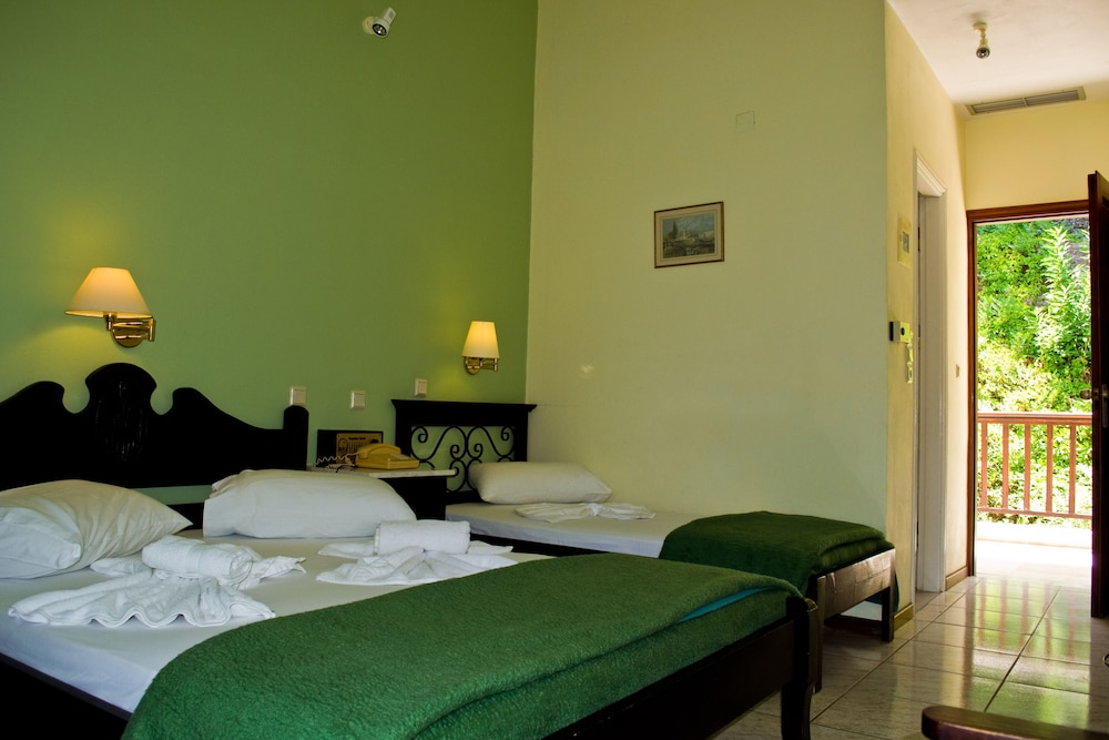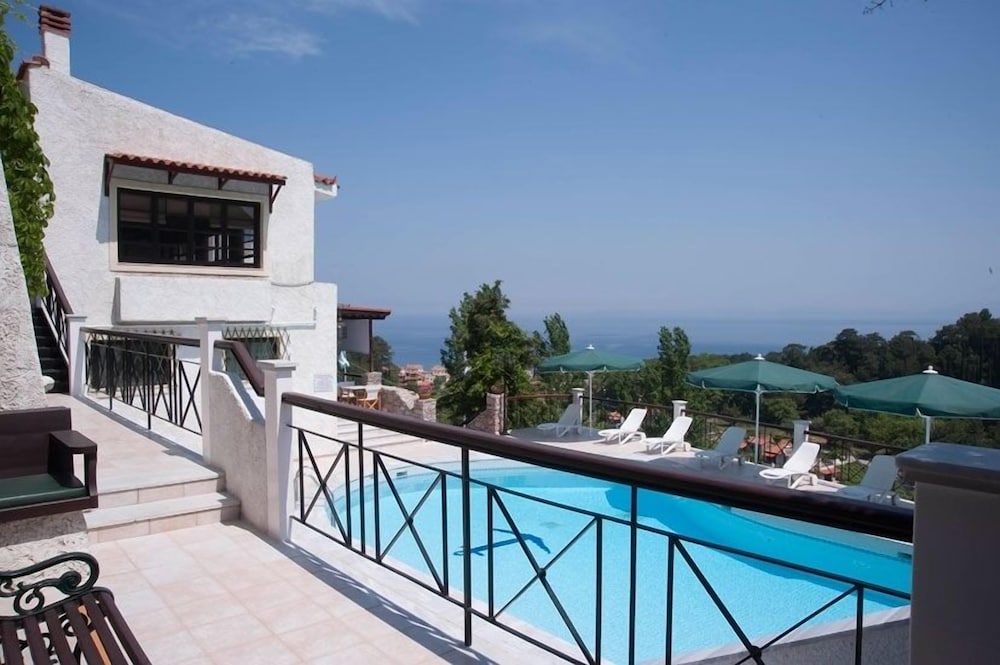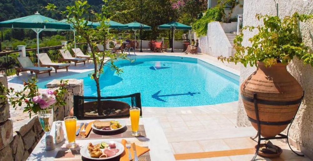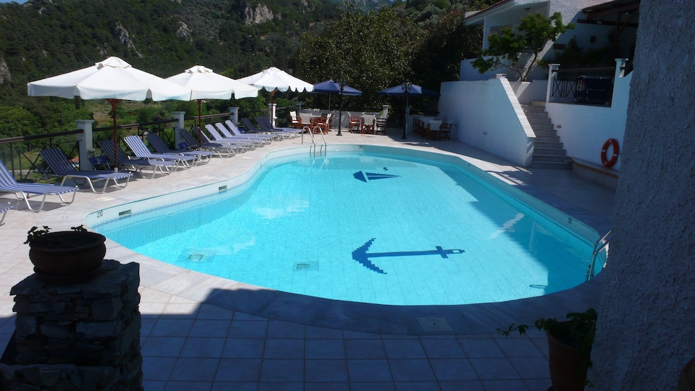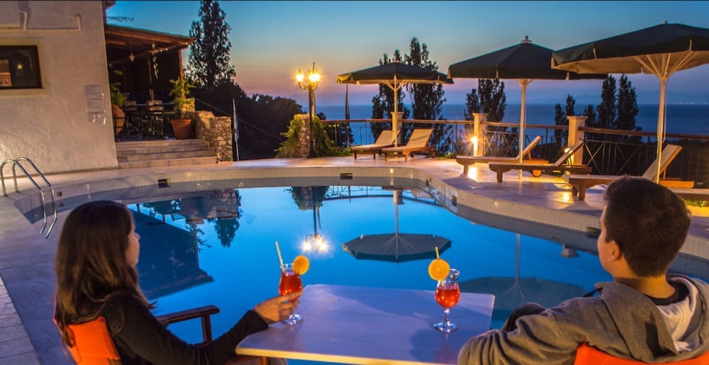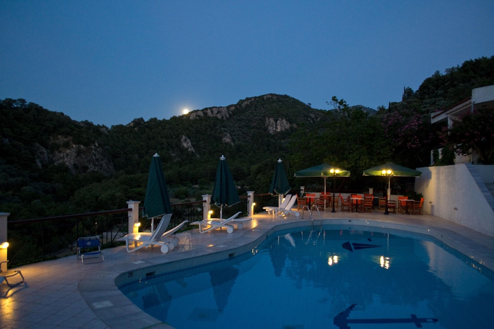 Situated in the Nightgales Valley of Agios Konstantinos, arguably the nicest area of Samos Island, this hotel boasts a privileged hillside location and spectacular views of the valley and the blue Aegean Sea. With Karlovasi town centre just 12 kilometres away, and Samos City 27 kilometres from the hotel, guests have a lot of entertainment options besides the beach just 600 metres from their room. In the afternoon, they can have a glass of chilled ouzo and play a game of backgammon or chess by the pool, before trying the authentic local delicacies at the breezy and charming restaurant of the hotel complex.