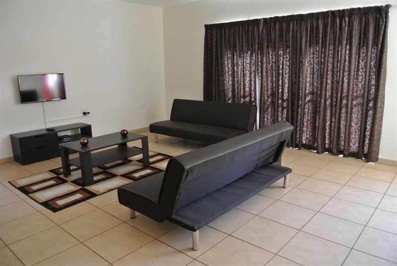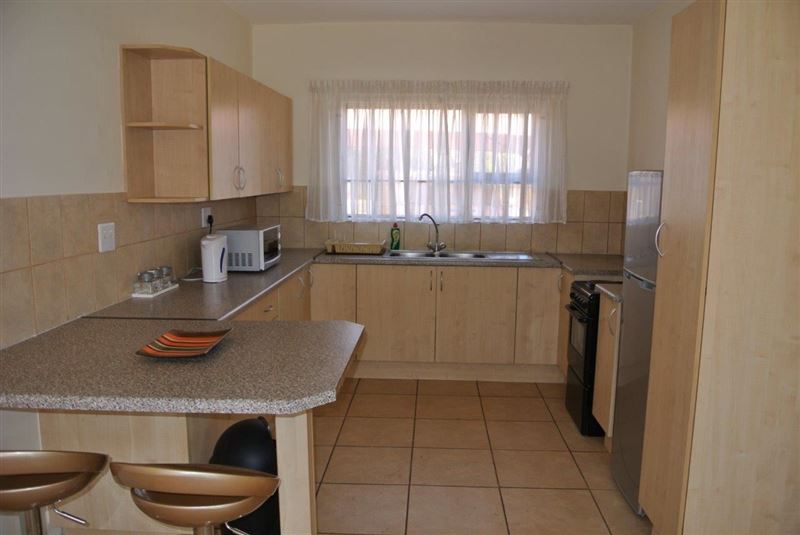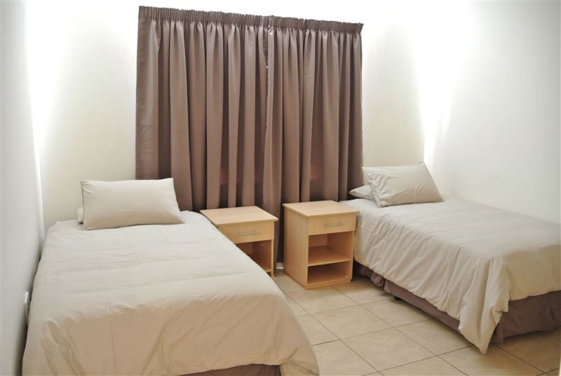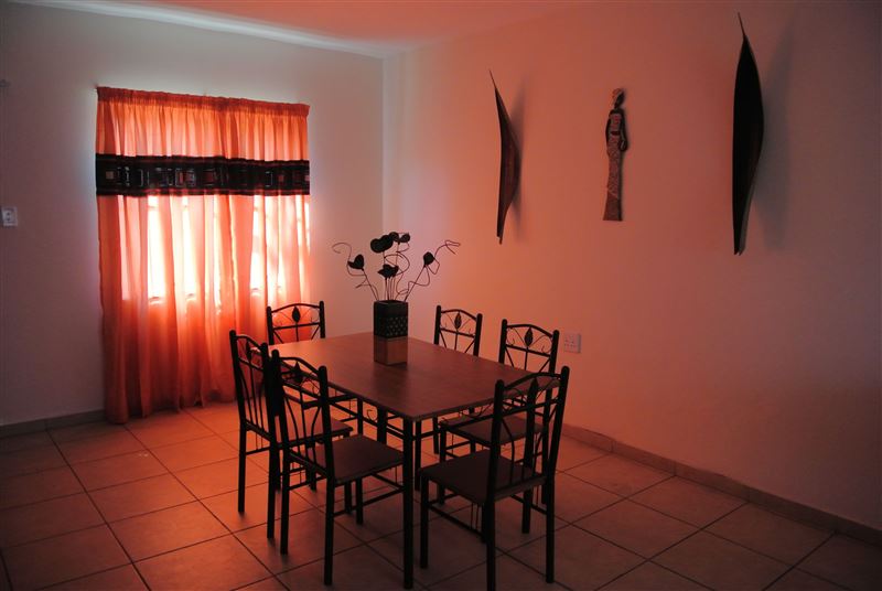 This self-catering unit has three bedrooms, all sharing one bathroom. The kitchen is fully equipped with a stove, an oven, a fridge, cutlery and crockery and tea and coffee facilities. The dining area can seat up to six people and the lounge is fitted with a TV and a DStv bouquet.