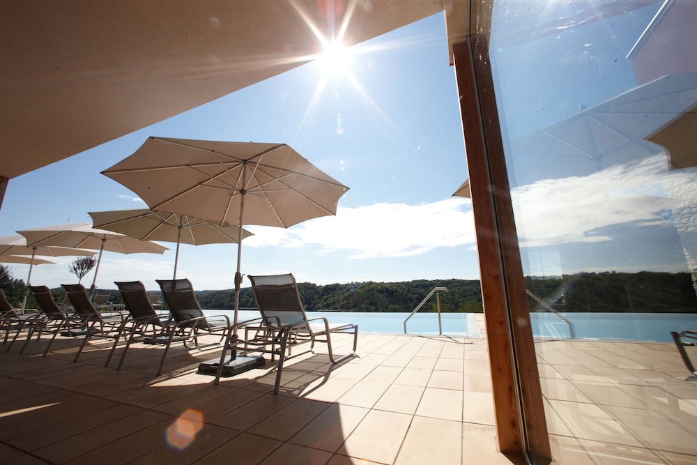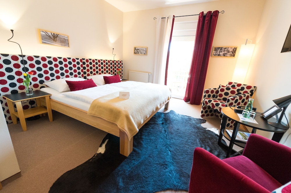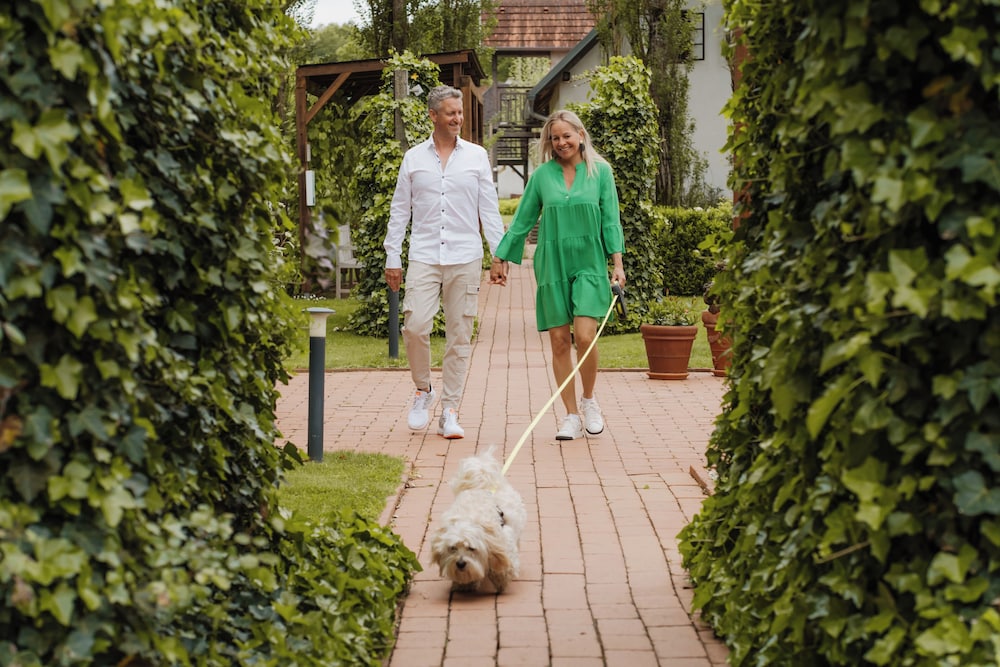Offering panoramic views of the surrounding countryside Das Eisenberg is located in Southern Burgenland's Raab Valley. It offers a spa area and a heated outdoor pool open from April to October.The Panorama Restaurant includes a winter garden and serves regional and international cuisine. Only high-quality products from Burgenland Styria Hungary and Slovenia are used. The in-house store offers regional products such as wine jams juices and cheese.The spa area features a sauna a steam bath an infrared cabin a relaxation room with tea bar and a massage and beauty department. Das Eisenberg also includes a library a vinotheque and a terrace.The modern rooms feature satellite TV a safe and a bathroom.Located close to the point where Austria Hungary and Slovenia meet Das Eisenberg is 13 km from the Loipersdorf Thermal Spa and 15 km from the Fürstenfeld Golf Course. There are many hiking cycling and horseback riding trails in the vicinity.