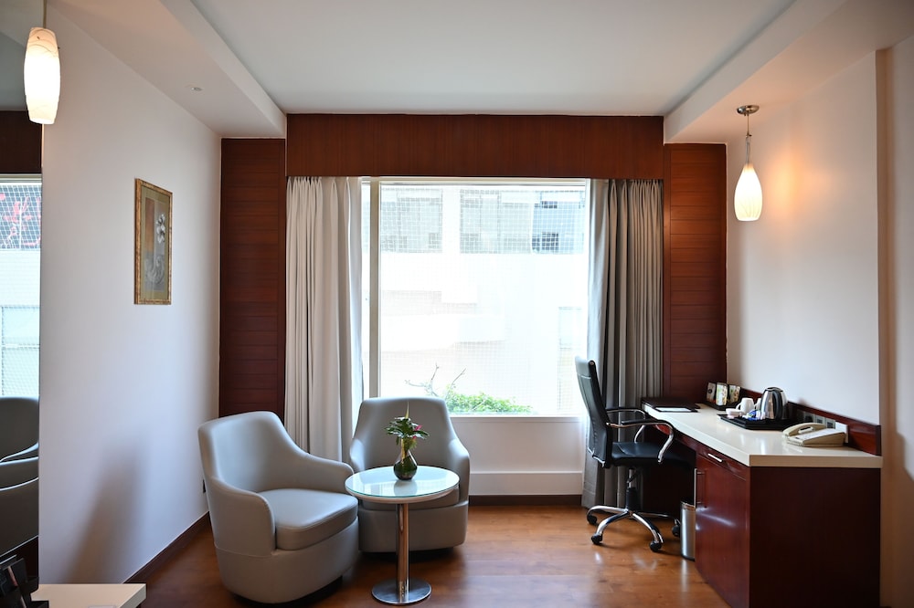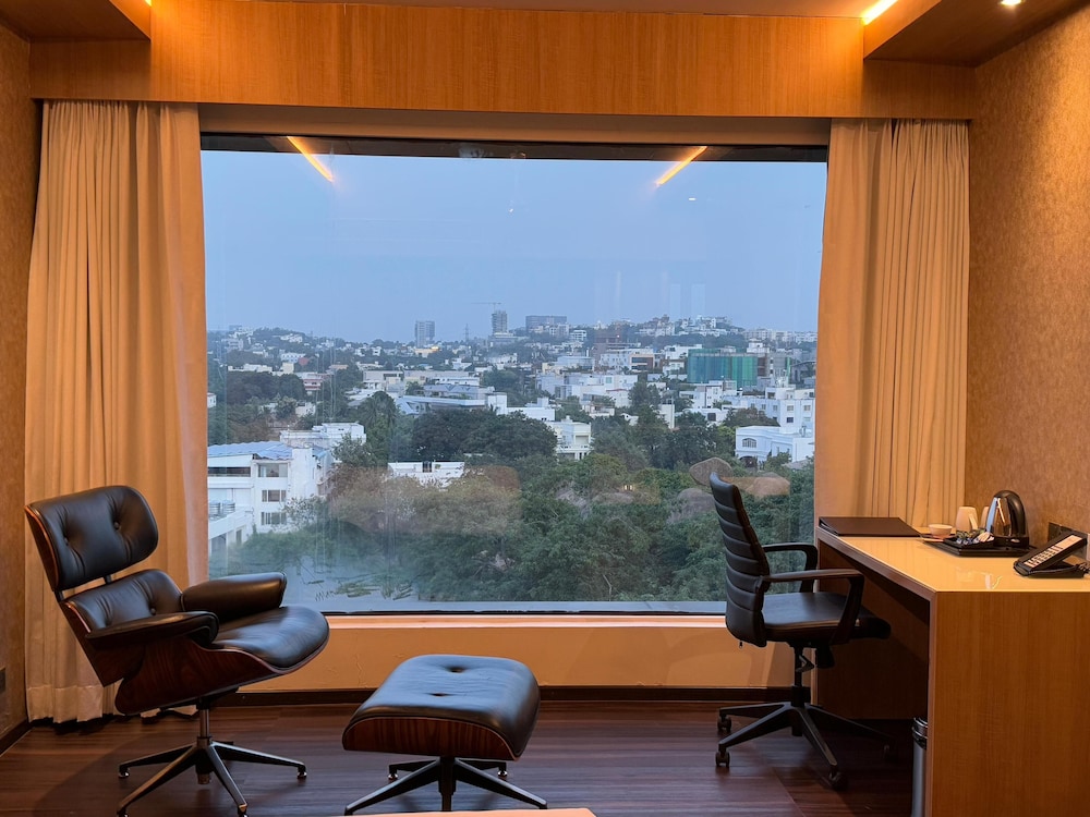 The hotel is centrally and conveniently located in the heart of Hyderabad Hi-tech City, and is in close proximity to several leading IT companies, media houses, head offices of pharmaceutical and infrastructure companies and financial institutions. It is about 30 minutes away from the airport.This is a luxurious hotel housed in a stylish building with contemporary architecture, which stands majestically on an elevated garden space. It is well designed whilst also providing the utmost in comfort and luxury for discerning travellers. The hotel provides 110 luxury rooms and facilities of an international standard. It is ideal for the business, medical tourism and leisure travellers.All rooms and suites are aesthetically decorated and luxuriously furnished. They feature the latest technology and focus on comfort and convenience. All rooms feature wooden flooring and masterfully crafted furniture with elegant decor. The rooms' minimalist contemporary style will make sure guests enjoy a luxurious stay with great value for money.