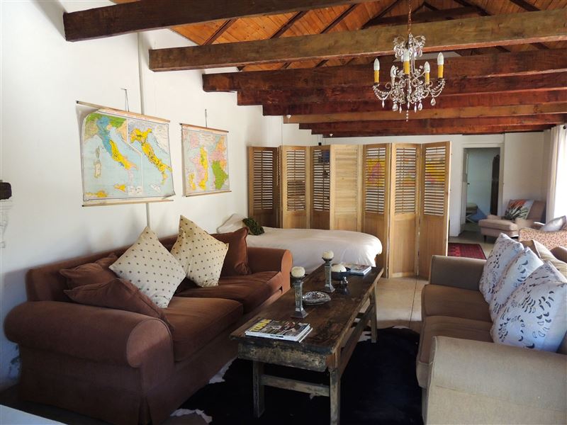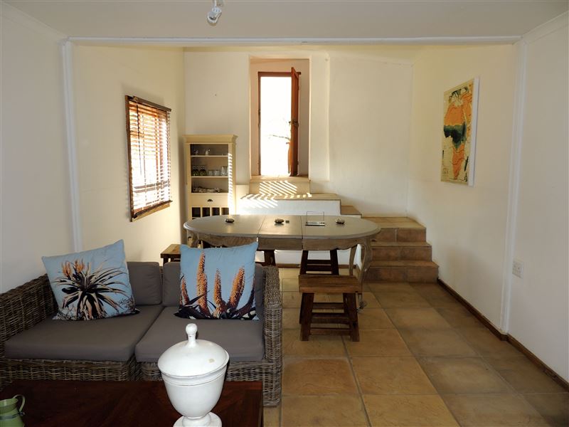 De Cango is a beautiful farmhouse overlooking the Swartberg Mountains, situated about 25 km from Oudtshoorn. The house consists of a spacious sleeping area, a private bathroom with a copper freestanding bath, an open-plan living area, and a fully equipped kitchen. Extra beds for children can be added on request.There is firewood provided for the braai area, and the house is serviced at a nominal fee. Solar power is used for electricity, with gas geysers.Activities in the area include hiking trails, fishing in the dams and rivers, and visiting the historical sites. The famous Cango Caves is