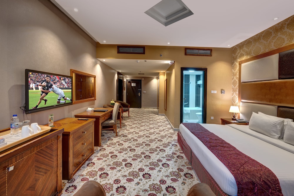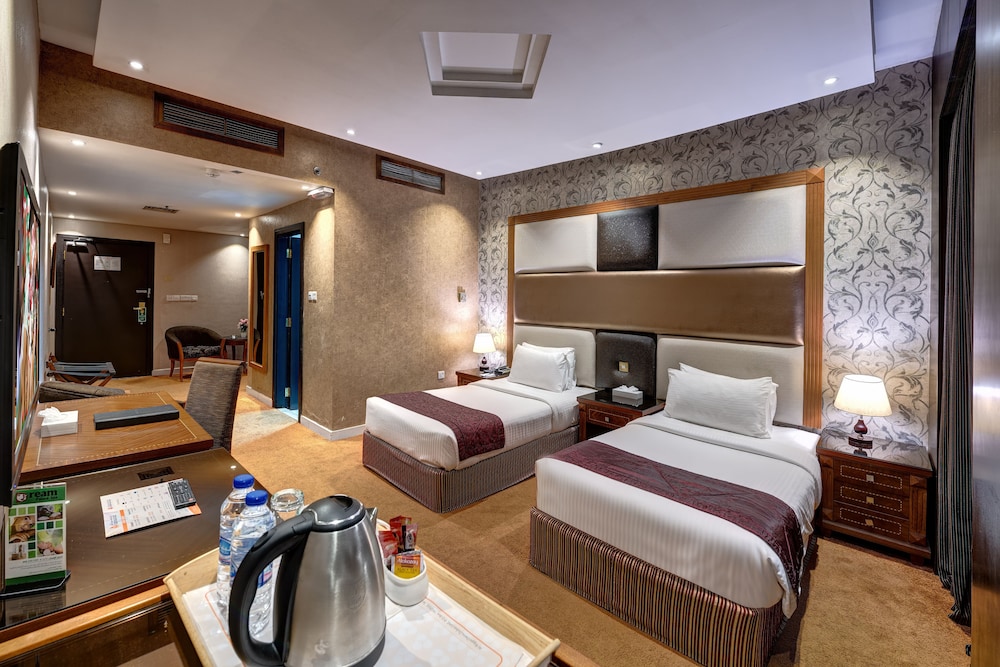 Located in the heart of Deira commercial and business district, Delmon Palace Hotel is a 4 star property offering easy access to Dubai’s major attractions such as Dubai Mall, Burj Khalifa, Mall of the Emirates and IBN Batuta. Each of the air conditioned accommodations feature a comfortable bed, wireless internet access, mini bar, safety deposit box, coffee/tea making facility and a private bathroom with amenities. The hotel features a restaurant serving buffet breakfast and a bar. Leisure facilities include a fitness centre and beauty salon. Delmon Palace Hotel is approximately 15-minute drive