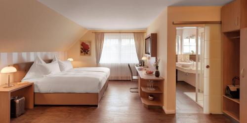 Located in the East Frisian fishing village of Greetsiel this family-run hotel is 5 km from the UNESCO Wadden Sea. It offers a sauna area free WiFi and outdoor bathing facilities.The Romantik-Hof offers comfortably furnished rooms in a classic style featuring a flat-screen TV with seating area a coffee/espresso machine and minibar. All private modern bathrooms come with a bathrobe hairdryer and large mirror.A rich breakfast buffet is served daily.The marble-furnished sauna area at the Romantik-Hof invites guests to relax in the Finnish sauna bio sauna and aroma steam bath. The recently added outdoor bathing facilities and garden offer guests further options to relax.The area surrounding the Romantik-Hof is ideal for walks along the Wadden Sea bicycle tours and hiking through the countryside. The historic 1881 Pilsum Lighthouse and ancient Appingen Abbey are within a 5-minute drive away.