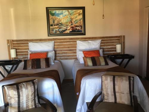 De Sandsteen Gastehuis is a stylish and modern guesthouse, offering accommodation in three guest rooms. The guest house is situated in the small town of Warden, practically halfway between Durban and Johannesburg, and close to the R714 that leading to Bethlehem.The three guest rooms are each individually decorated but all fitted with comfortable beds, en-suite bathrooms, tea and coffee facilities and DStv. All bedding is provided and every room has heaters and fans. Meals are available on request at an additional fee. Come and relax in this calm setting with true country hospitalit