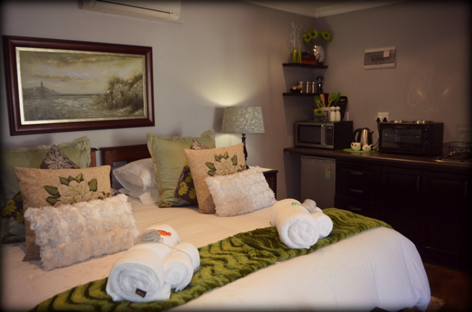 De Stallen consists of two fully equipped, spacious cottages, as well as two luxurious self-catering rooms. Enjoy a relaxed farm ambience in luxurious accommodation and unwind. Count the stars, live the sunset and bask in our warm hospitality.Our first cottage is an ideal family unit in the form of a very spacious open-plan cottage with a double bed and three single beds. The second cottage has two rooms with a double bed in one room and two single beds in the other; both rooms have en-suite bathrooms.There are also two en-suite, self-catering rooms; the first room h