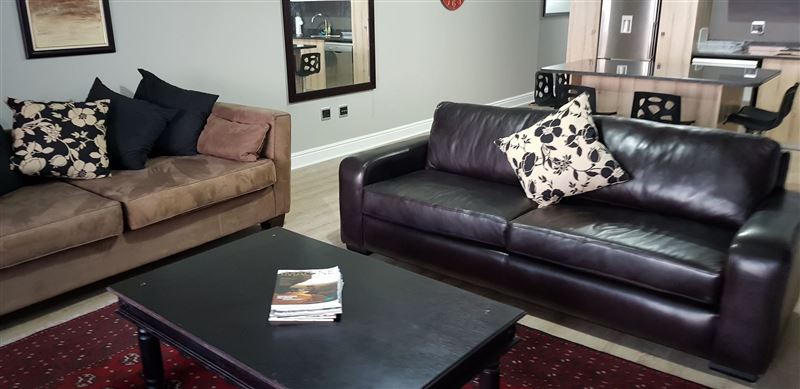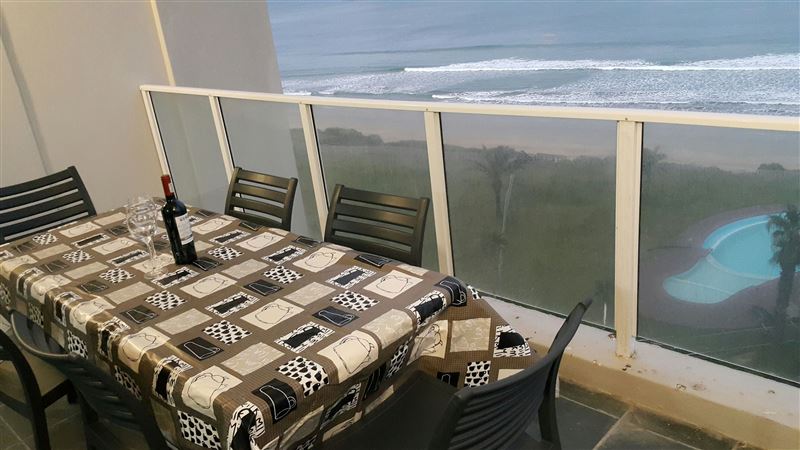 This is a luxurious, two-bedroom self-catering apartment in the stunning Beach Club secure complex. It is right on a safe swimming / surfing beach, with beautiful beach- sea views of Diaz and the Mossel Bay, Hartenbos areas. The apartment can sleep up to 4 persons and has wifi, DStv for its smart TV. It has a top quality extra length queen-size bed in the main bedroom and 2 single beds in the second bedroom, for which linen and bath towels are provided. There are two en-suite bathrooms. The kitchen is fully equipped with an under-counter oven, glass hob, extractor fan, microwave, dishwasher, w