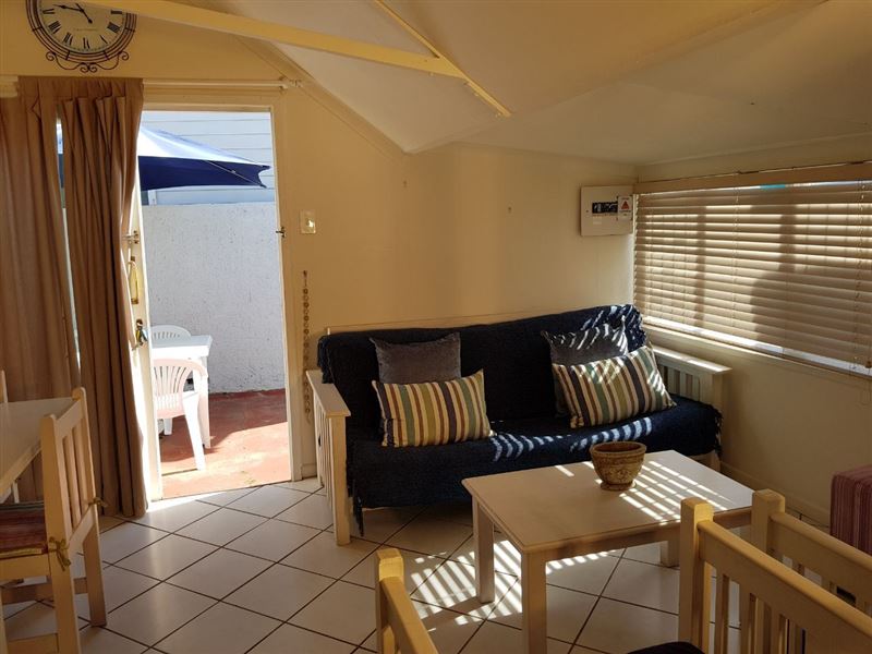 The unit has one bedroom and one bathroom. The fully equipped kitchen features a dishwasher. The living area is equipped for cosy seating, a TV with DStv channels. Braai facilities are also available.