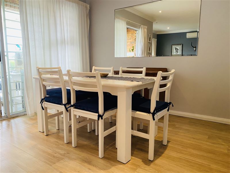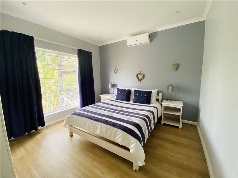 Imagine walking in the serene wilderness of Ballito. At Dolphin Mews guests can unwind and feel at ease during their stay by the tranquil ocean side.This fully furnished townhouse comprises of 3 bedrooms and 2 bathrooms. The house is able to accommodate 6 guests. The main and second rooms each have a queen-size bed, and the third room is equipped with two single beds. The bathrooms feature a shower and the master en suite has a bath. The well-equipped kitchen contains the necessary appliances to cook meals, including a dishwasher and a washing machine. <
