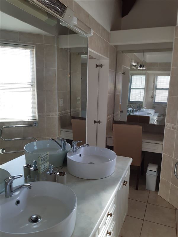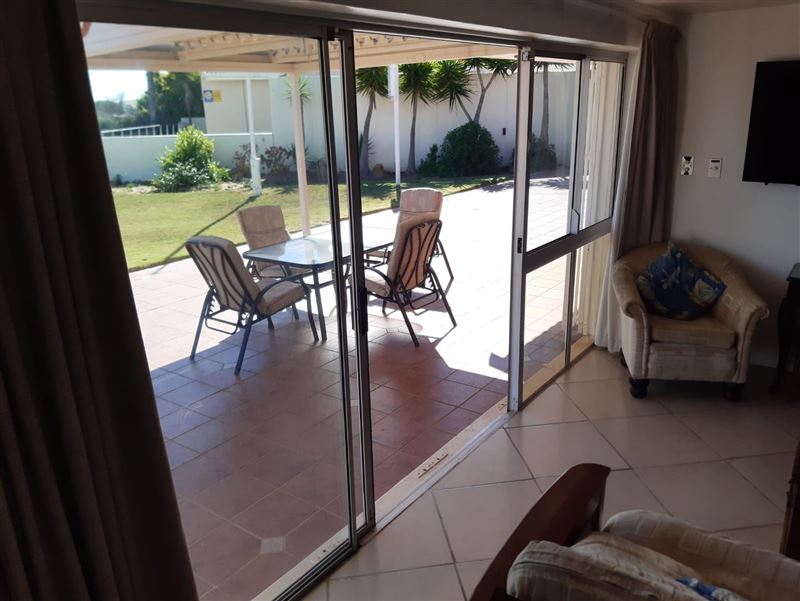 This luxury holiday home offers self-catering accommodation and is ideal for a couple that seeks time alone or a small family of four. The lounge and kitchen is semi-open plan. With indoor and outdoor braai areas you can entertain guests without fear. The main bedroom has a queen size bed and en-suite bathroom with spa bath and shower. The second bedroom has two single beds with a bathroom. The third bedroom is ideally suited for children under 12 and is off the main bedroom.