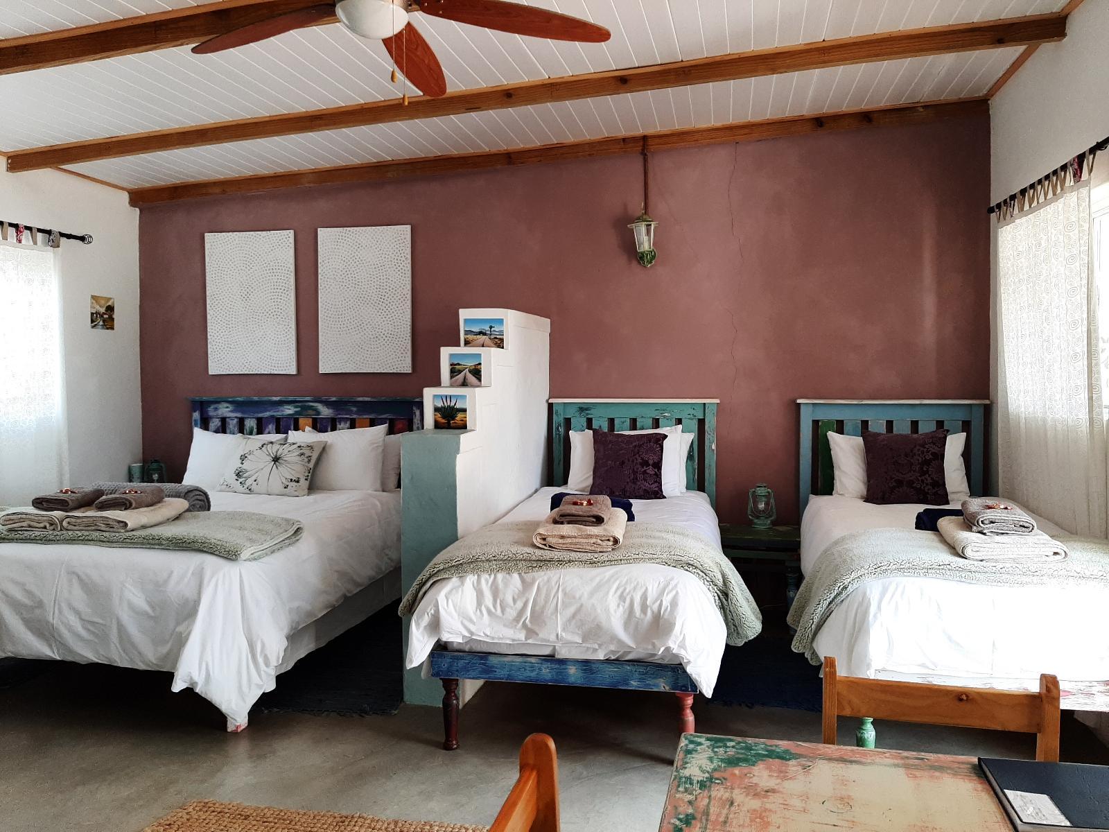 Doodle Dens are brightly decorated units in Barrydale. Special attention to details has been paid when decorating these cosy cottages and they provide a great nights' stay. Guests have the choice of Rhinoceroodles Doodle Den, Owls of Snoozles Doodle Den or Dozy Dawgs Doodle Den. All cottages have queen beds, private entrances, bed linen, extra pillows and blankets, and bathroom amenities. Further amenities include a hair dryer, patio/balcony, kettle, mini fridge, heaters and electric blankets. Guests are driven to Barrydale for the Hardys Memories of Africa African Art