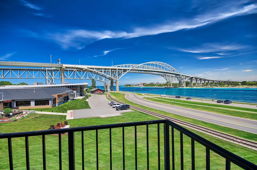 Savor a warm chocolate chip cookie upon arrival at the DoubleTree by Hilton Hotel Port Huron, MI and enjoy impeccable service and stunning views of beautiful Blue Water Bridge and the St. Clair River. Located just off I-69, this friendly Port Huron, MI hotel is only minutes from St. Clair County International Airport and offers easy access to many Port Huron businesses, attractions and shopping and dining options.All of the spacious guest rooms and suites at this modern Port Huron hotel feature a variety of thoughtful touches and modern amenities. Watch movies on the 37-inch HDTV and catch up with work at the desk with complimentary WiFi and remote printing. Recline on the comfortable Sweet Dreams bed and read your complimentary copy of USA Today. Our rooms also offer a microwave, mini-refrigerator, deluxe bath amenities and a coffee maker to make you feel at home.Host your next event at our hotel in Port Huron, MI with a variety of flexible meeting spaces available, including two spacious ballrooms, all offering the latest in A/V technology and complimentary WiFi. Stay productive in the 24-hour business center, with a range of useful services and amenities. Energize with a morning workout in the complimentary 24-hour fitness center before enjoying a complimentary cooked-to-order breakfast. After a busy day exploring Port Huron, savor a cold beer and a variety of American classics at our welcoming onsite restaurant, Freighters.