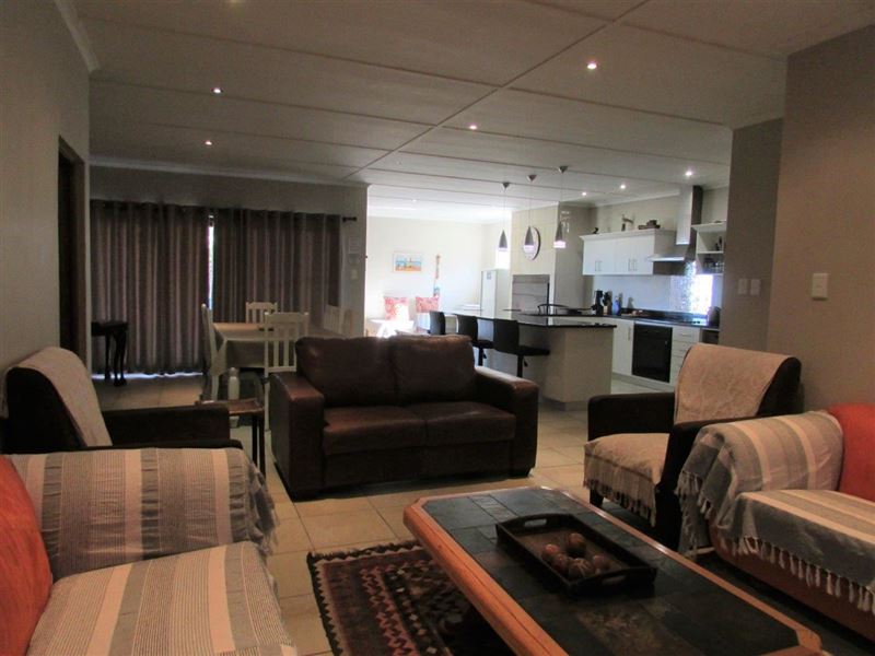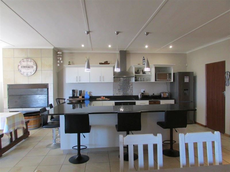 If you are looking for a break from the everyday hustle and bustle, then you will find Driftwood’s easy West Coast living enjoyable, and its ideal beach side location rejuvenating.This spacious house is situated in the quiet fishing town of McDougallsbay and with a beachfront location, boasts beautiful sea views from almost every room in the house; especially from the front under-roof patio with outside braai area. The house consists of three bedrooms, and sleeps seven guests comfortably. Up to eight guests can be accommodated.The living room is spacious and sunny; in an open-plan layout it o