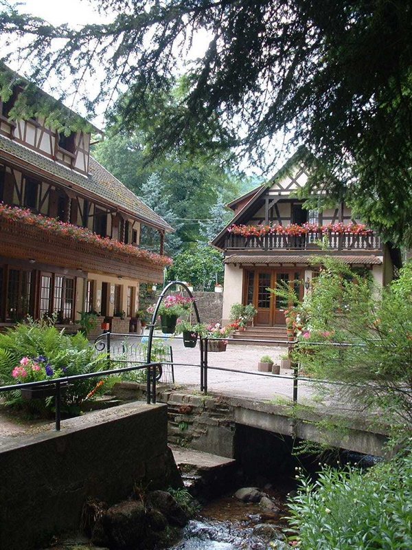 Very quiet hotel in alsatian style, on a wide property, surrounded by the forest, with a river and a nice park behind. We are located outside from Barr in direction of Mont Sainte Odile, between Colmar and Strasbourg and close to : Alsatian Wine Route, Obernai, Haut-Koenigsbourg and there are walking / mountain biking routes directly lacing the hotel.We propose private parking closed for the night. The restaurant offers dishes made with fresh season products. There is a big wine list with 1 600 references (Grand Prix de la Presse du Vin, Wine Spectator Best Award)Free of charge : private parking, garden, baby cot, Wireless LAN (Wifi), safety deposit box, satellite TV, pets, touristic information, newspaper, …With fees : Fax service, private box garage, luggage transfer, …Breakfast buffet not included : 10 Euros/person VAT included Local tax not included : 0,40 Euro/person