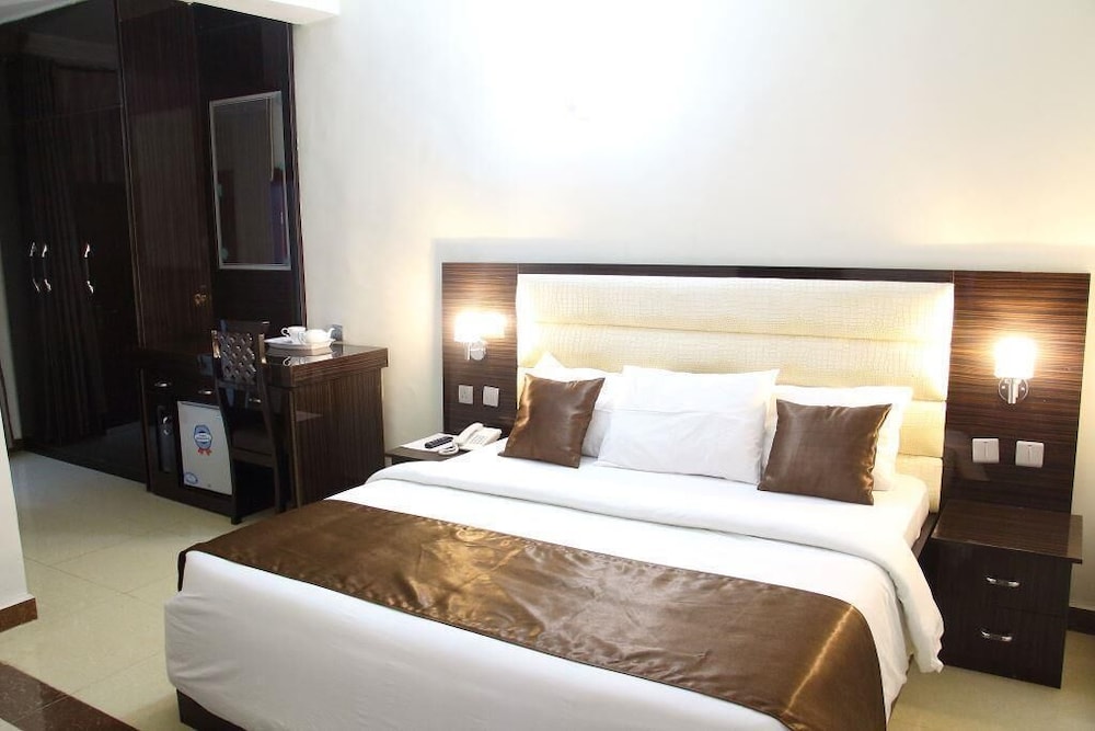 Located in Abuja, E-Suite Hotel is convenient to World Bank and Ecowas Secretariat. This spa hotel is within close proximity of Aso Villa and National Assembly. Make yourself at home in one of the 21 air-conditioned rooms featuring fireplaces and plasma televisions. Complimentary wireless Internet access keeps you connected, and satellite programming is available for your entertainment. Conveniences include safes and desks, and housekeeping is provided daily. Pamper yourself with a visit to the spa, which offers massages, body treatments, and facials. Additional features at this hotel include complimentary wireless Internet access and concierge services. Satisfy your appetite at the hotel's restaurant, which serves lunch and dinner, or stay in and take advantage of 24-hour room service. While enjoying a refreshing dip in the hotel pool, you can order your favorite drink at the poolside bar. A complimentary continental breakfast is served daily from 7 AM to 10 AM. Featured amenities include a 24-hour business center, complimentary newspapers in the lobby, and dry cleaning/laundry services. Free self parking is available onsite.