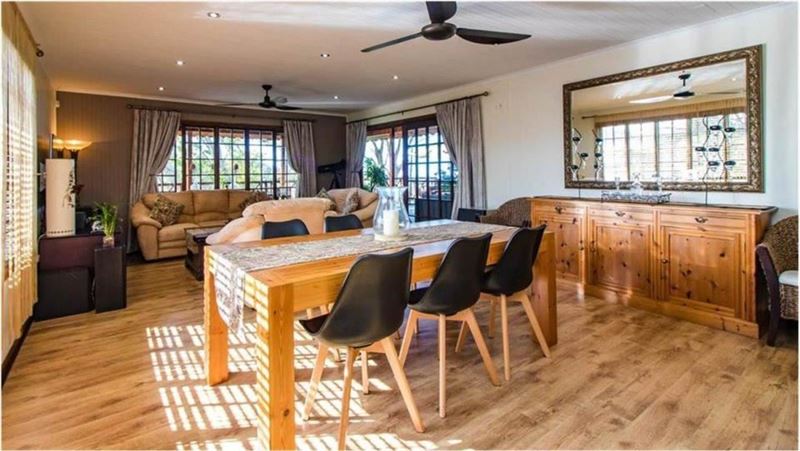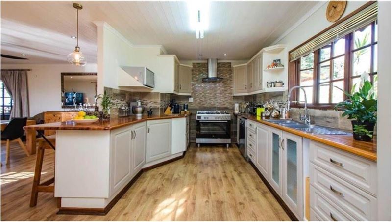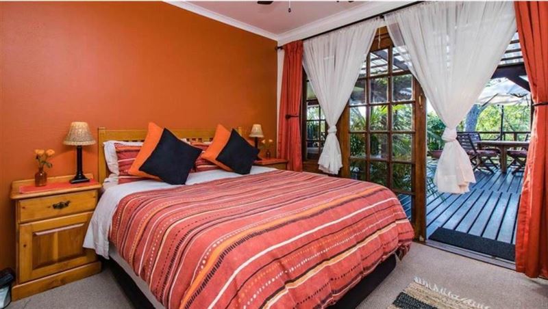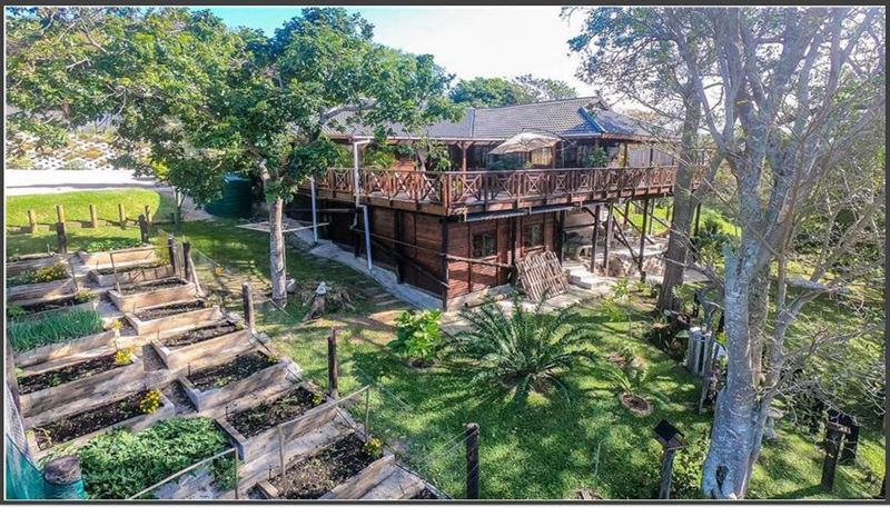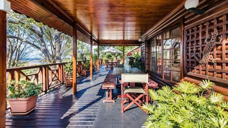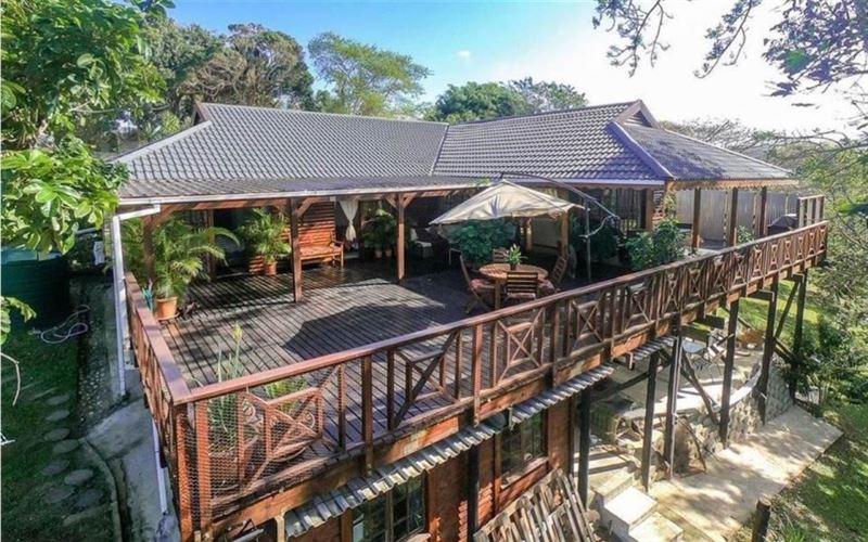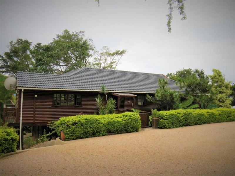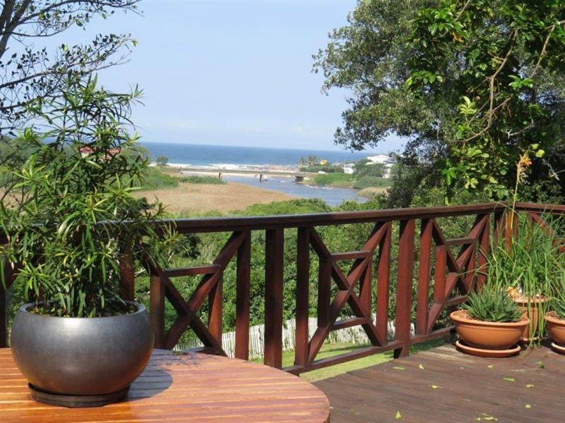Eagles Hide is a magnificent Hilltop paradise which is truly something unique. It is set on a large stand with riverine forest, indigenous trees and home to amazing birds and other wildlife. This charming timber home is a haven for the nature lover. River views over the Mhlangeni river and a glimpse of the St. Michaels swimming beach are part of the charm. Our unique hideaway offers top quality interior finishes. The country style kitchen has ample cupboard space as well as solid wood counter tops and a large gas stove. The kitchen leads out to an open plan dining room, small bar a