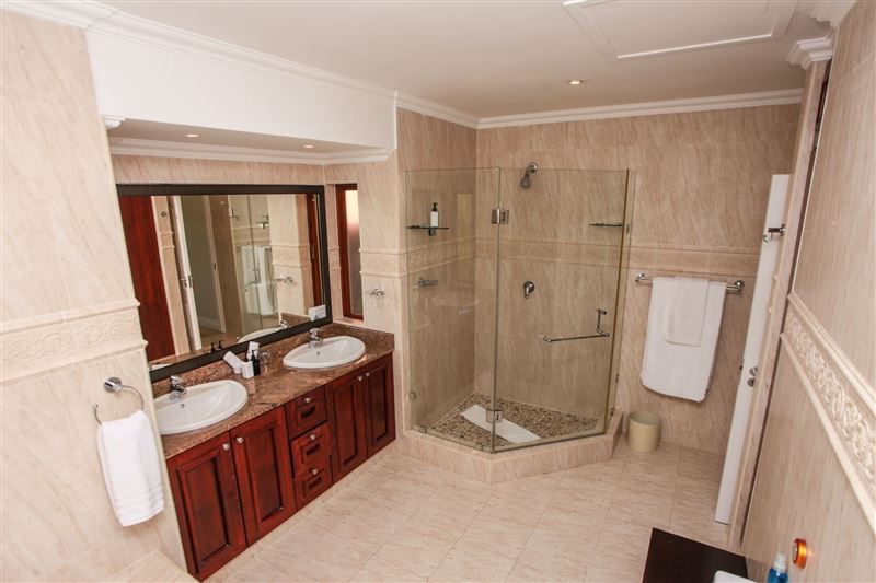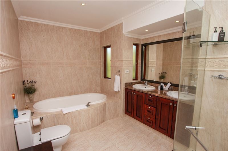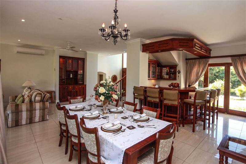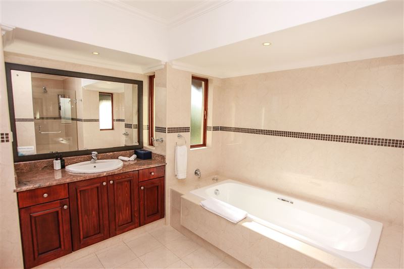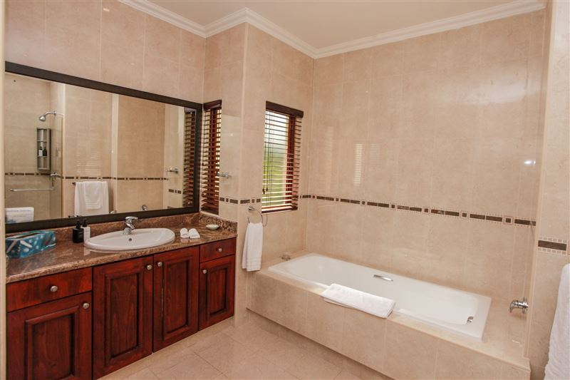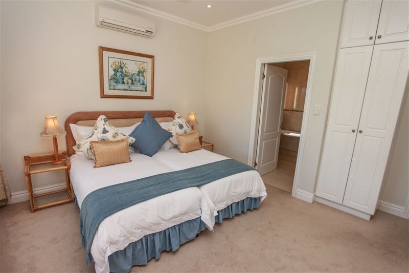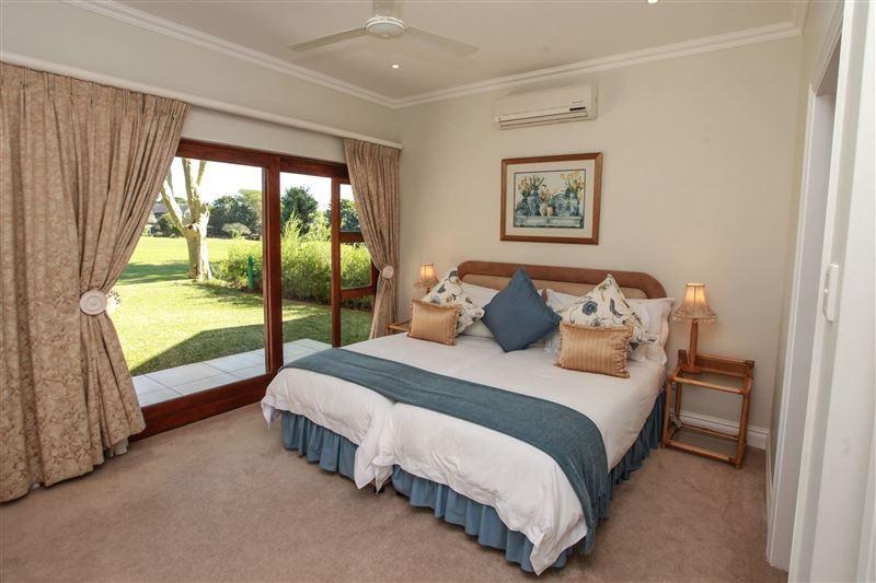 Eagle's Rest is a beautiful three-bedroom, holiday villa that borders the 14th fairway at Selborne Park Golf Estate. All three bedrooms at Eagle's Rest have large built-in cupboards, dressers, bedside tables with lamps and enjoy gorgeous views of the surrounding area. Each of these rooms has a spacious en-suite bathroom with a bath and a shower. The lounge has a large flat-screen TV with the full DStv bouquet. Open-plan to the lounge is the dining area with a six-seater dining room suite and a ladies bar area. The kitchen leads off from the lounge and dining area and is fully equip