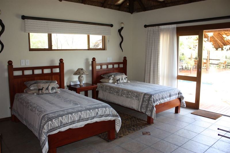 Ebuhleni Lodge is an exclusive self-catering bush lodge situated in the beautiful Mabalingwe Nature Reserve, which is a Big 5 reserve, and is rich in abundant bird and animal life. The reserve is spread over more than 12,500-hectares of malaria-free unspoilt bushveld, nestled in the shadow of the majestic Waterberg Mountains.Ebuhleni Lodge is available to only one group at a time, ensuring enjoyment and privacy. The lodge comprises of a double-storey main house, and a cottage.The cottage features a bedroom with a king-size bed, and a second bedroom with twin three-qua