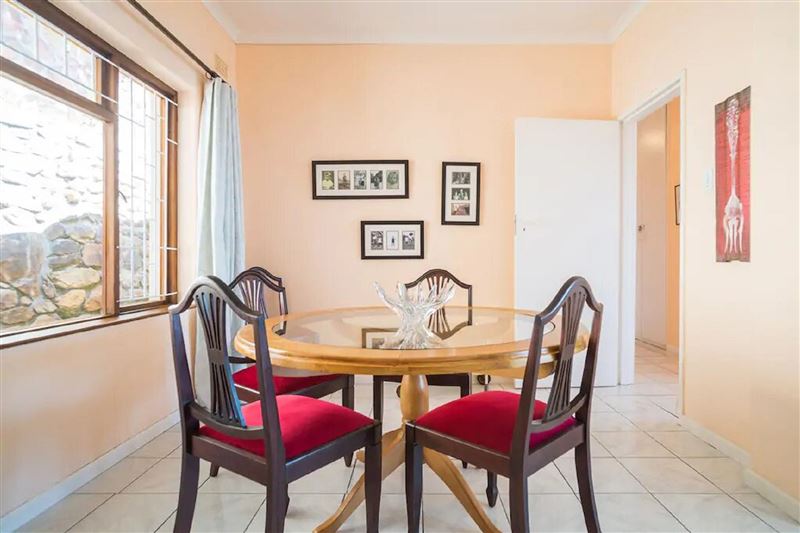 Situated on the slopes of Fishhoek, this quaint little cottage has spectacular views overlooking False Bay. With two bedrooms and two bathrooms, it is the ideal getaway for a small family or group of friends. Each bedroom has a double bed and built in cupboards. There are 2 full bathrooms that both have a bath and a walk-in shower. There is a lounge with a flat screen TV, a dining room that seats 4 people around a round dining table and a fully equipped kitchen. There is a large entertainment area in the front of the house where you can entertain guests while looking out over the o