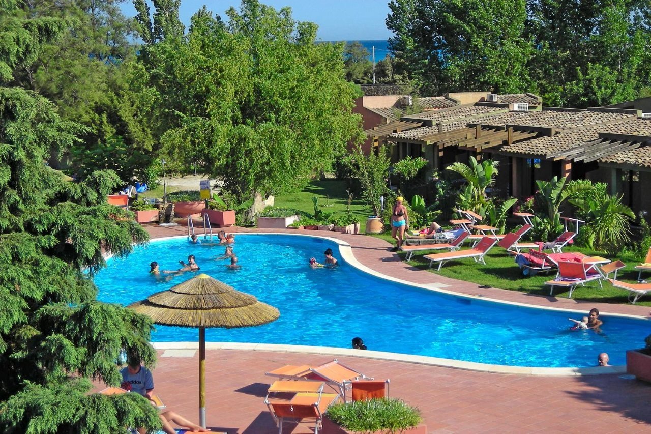 Facilities and service include restaurant, bar, garden, solarium, swimming pool, mini club, tennis court, soccer court, T.V. room, safe (at reception). parking and 24-hour reception.** Please note that some of the above facilities may be closed due to weather / seasonal conditions.**Rooms feature T.V. , air conditioning, telephone, and bathroom.The FB meal plan includes: Buffet breakfast, lunch and dinner, drinks included at meals (½ mineral water + ¼ wine). Typical dinner with traditional dishes once a week.Address: Lungomare Nazario Sauro 30/34, 09049, Villasimius, Sardinia, Italy.