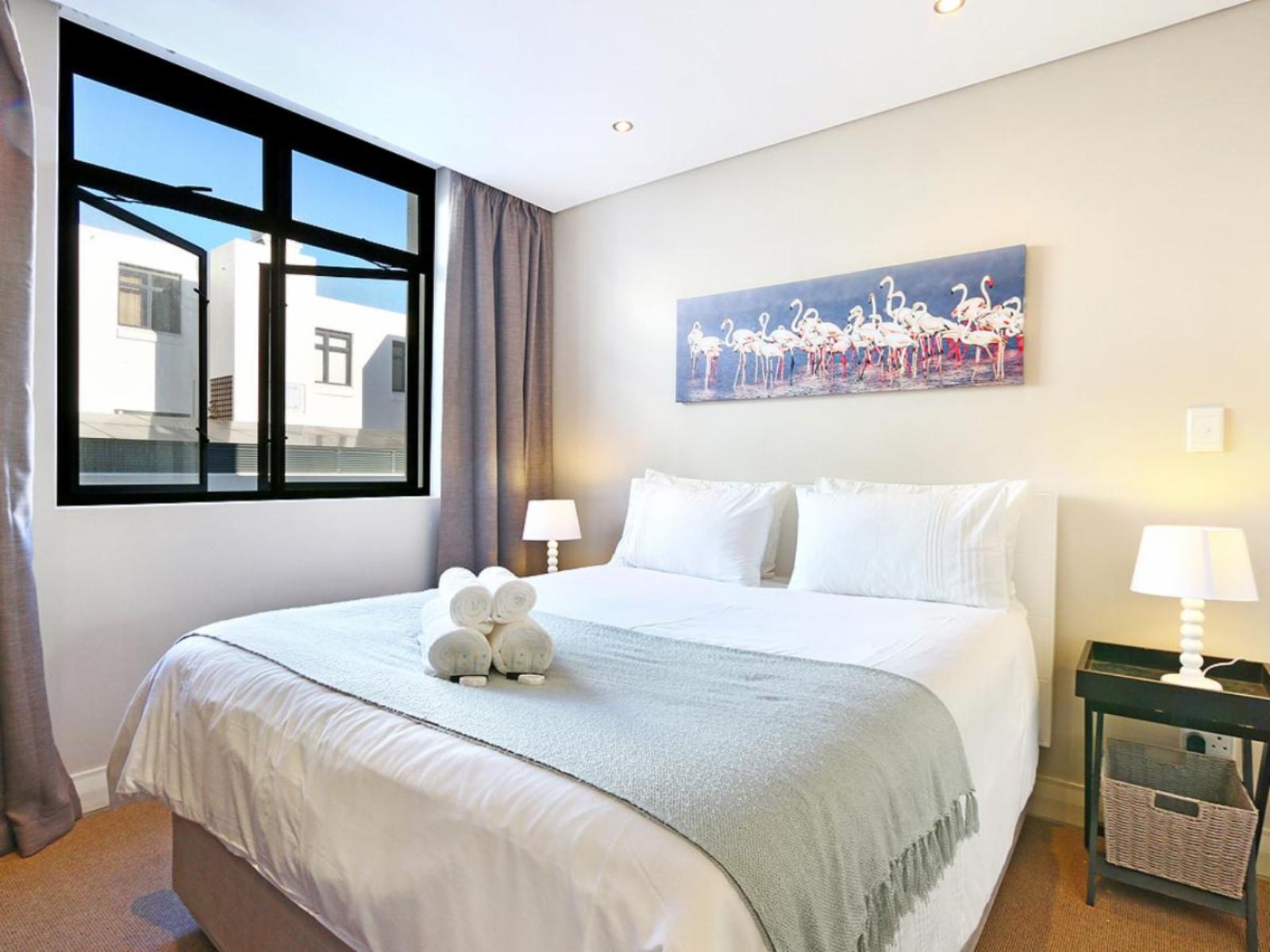 Kick back and relax in this fully equipped, beautifully decorated one-bedroom apartment in the shopping and lifestyle complex Eden on the Bay, Big Bay. The exquisite main interior is open plan with the kitchen leading to an elegant dining room and lounge. The kitchen is fully equipped, including a kettle, fridge, microwave, and a built-in oven with a stovetop. The elegantly furnished lounge leads to an incredible view of the Atlantic Ocean on the balcony. Big Bay is a popular modern metropolis that overlooks the alluring West Coast of Cape Town, with breathtaking views