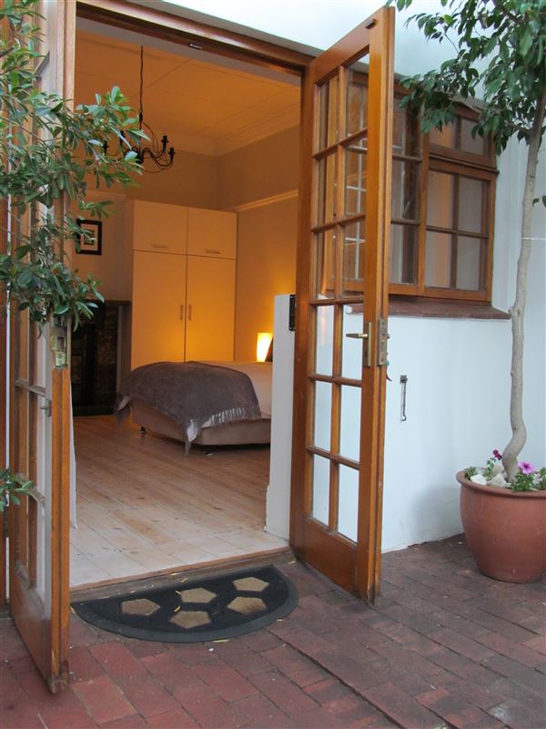 Eight On Burnside is a beautifully furnished self-catering unit situated centrally in Tamboerskloof, an upmarket suburb of Cape Town.This spacious unit consists of a sleeping area with a double bed and a sleeper couch, a full private bathroom and a fully equipped kitchenette. The TV has full PVR DStv, and Internet connection can be provided on request. There is a lovely courtyard leading off the bedroom with views of Table Mountain. The unit is serviced once a week, but additional days can be arranged on request.Your host is a tour guide and can offer sug