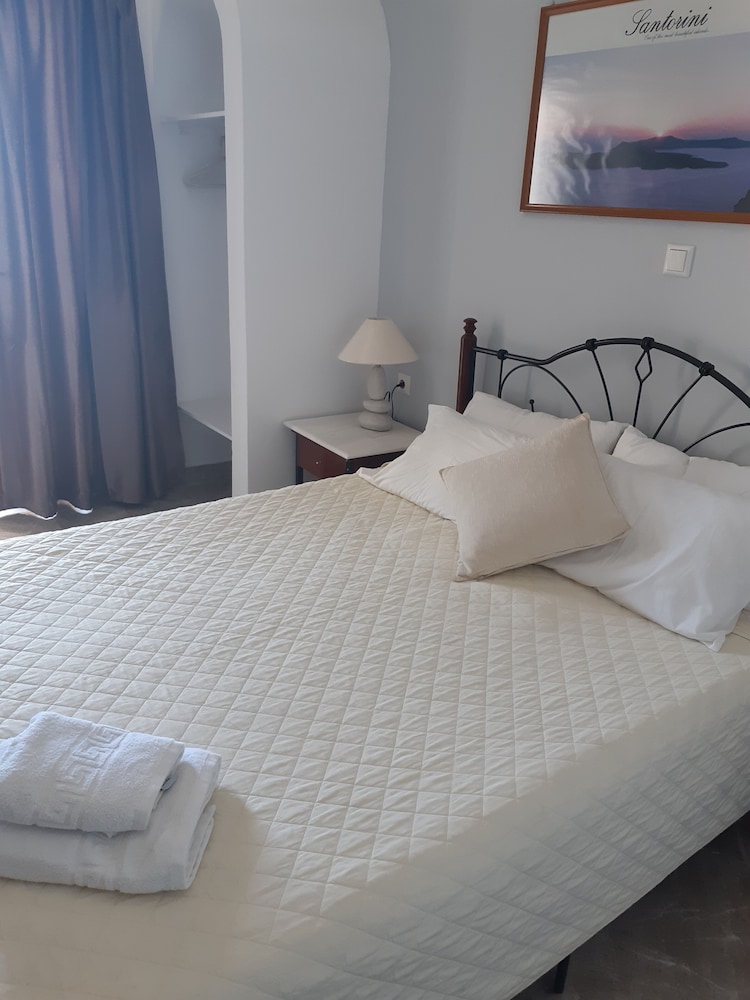 This popular property is located in Karterados village. There is car parking.Just a few minutes walk from the island's capital,Fira.Emmanouela Studios offers traditional Greek hospitality with modern comforts in Santorini.It feature accommodation with sea or village view.Consisting of 12 rooms with private balconies,each unit comes with a tv,private bathroom fitted with a shower and an air condition.There is also a swimming pool at our sister hotel that is 500 metres away from Emmanouela Studios.We offer to our guests arrival/departure transfer with an extra cost.The breakfast and the kitchen are available with an extra fee.