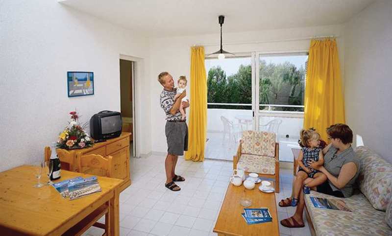 This apartment complex is located in one of the most beautiful areas in the north-west of Menorca, only a five-minute drive from the beach and shopping amenities, and approximately 700 m from the tourist centre with its bars and restaurants in addition to a park. Ciutadella is about 10 km away, and it is a good 50 km to Mahón airport.//The complex comprises a total of 50 modern apartments set in incomparable surroundings. Facilities in the air-conditioned building include a lobby area with a reception desk manned around the clock, a hotel safe, a currency exchange facility, and lift access. Alongside a supermarket, guests may also take advantage of the cafeteria, the snack bar, the private parking spaces, the laundry services, the bicycle hire, and further services.//All the apartments come with a double room with a terrace, a fully equipped en suite bathroom, and a living room with two sofa beds. Also provided as standard are a complete kitchenette with a fridge, air conditioning, heating, a direct dial telephone, a safe, and satellite TV.//The complex features a sun terrace and changing facilities. For additional charges, guests may make use of the outdoor swimming pool, the children's pool, the poolside snack bar, and the sun loungers and parasols (in the grounds and on the beach). It is also possible to play table tennis and billiards or enjoy one of the entertainment programmes and shows which are offered during the week.//Breakfast is offered to guests every morning. Lunch may be chosen from the à la carte menu.