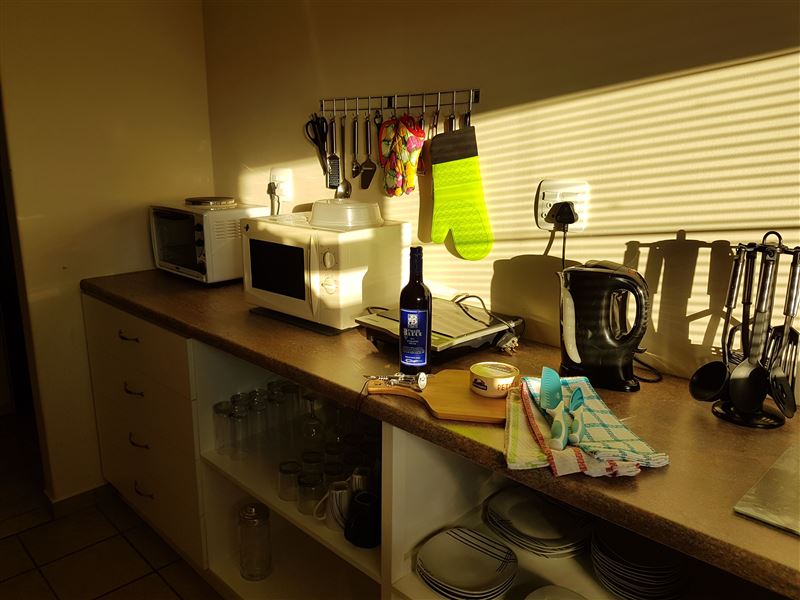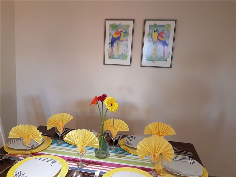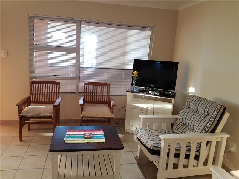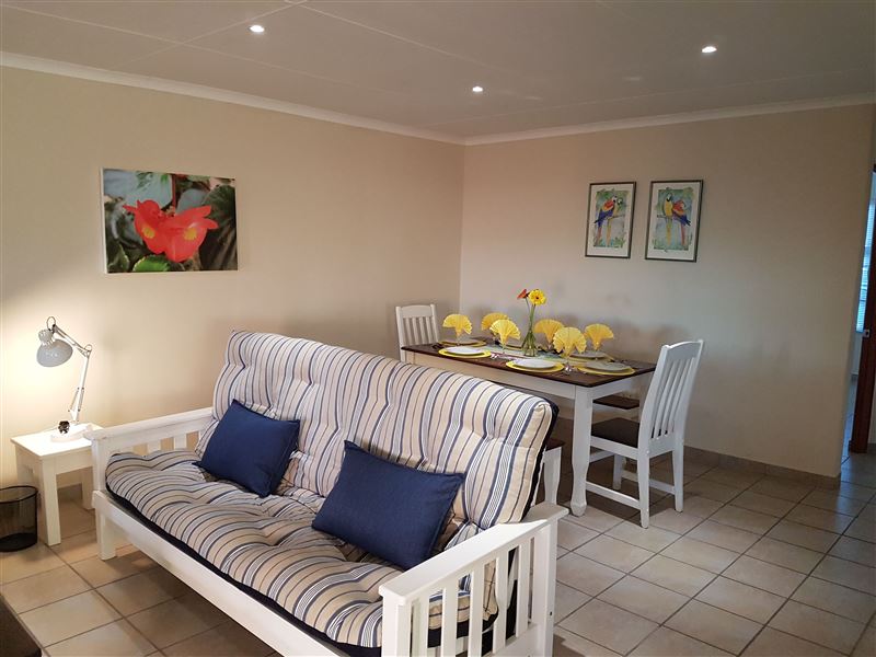 Erika Apartment is located in an apartment building in the small town of Dana Bay, just outside of Mossel Bay. It offers self-catering accommodation for up to four adults and two children, with the beach a mere 3 km away.The apartment has two bedrooms and one full bathroom. The open-plan living area has a well-equipped kitchen with a conventional oven, a microwave, an electric flying pan and tea and coffee-making facilities; we provide all cutlery and crockery. The lounge area has ample seating and a TV with a DStv connection, guests will need to bring their decoder and smart card.