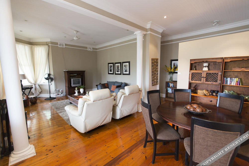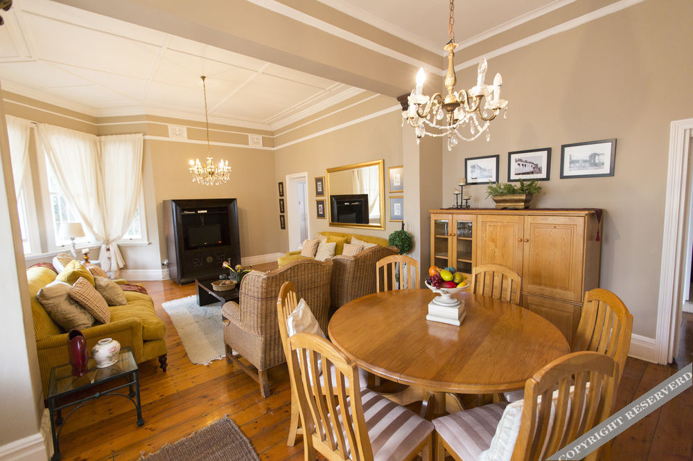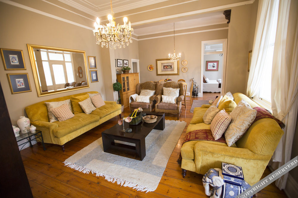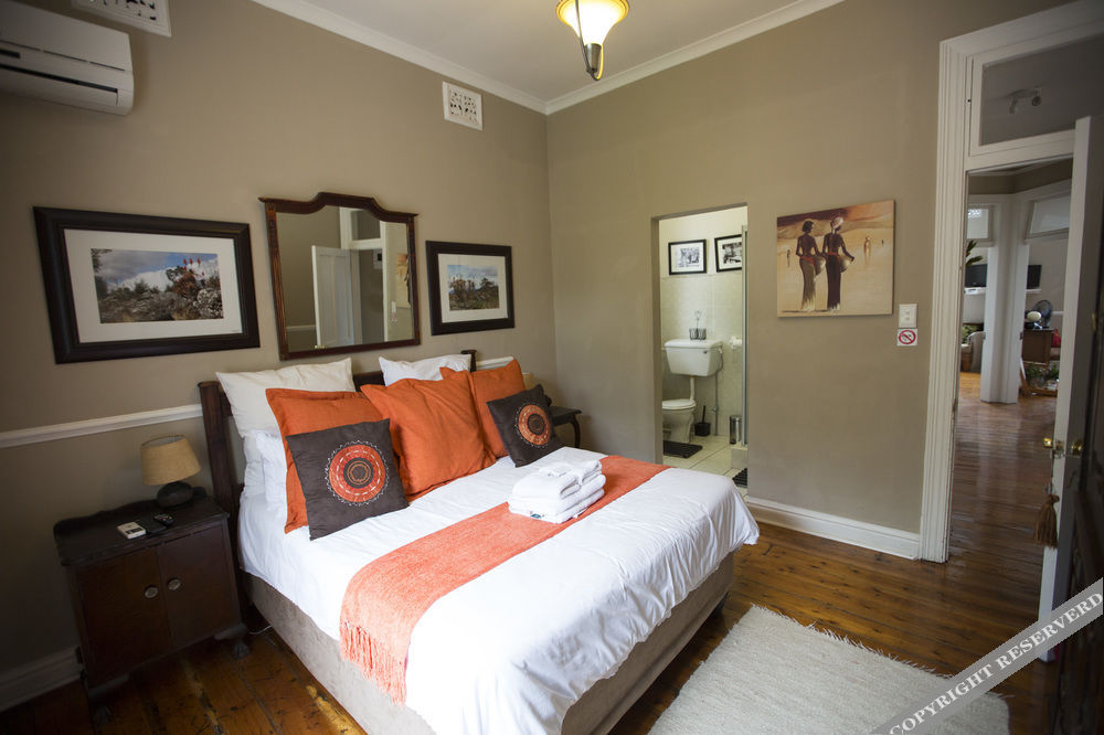 Erlesmere Lodge consists of two buildings. The main building is an elegant double-storey Edwardian house offering two self-catering apartments; the Lower Maisonette has two bedrooms and two bathrooms and the Upper Maisonette has three bedrooms with two bathrooms. Both have a lounge, a dining room and a fully equipped kitchen as well as wrap-around verandas. The second building is also a double-storey but is more modern and offers two rooms on a B & B basis. It has one King or Twin room and one standard double room. Both rooms have en-suite shower, toilet and basin. If booked indivi