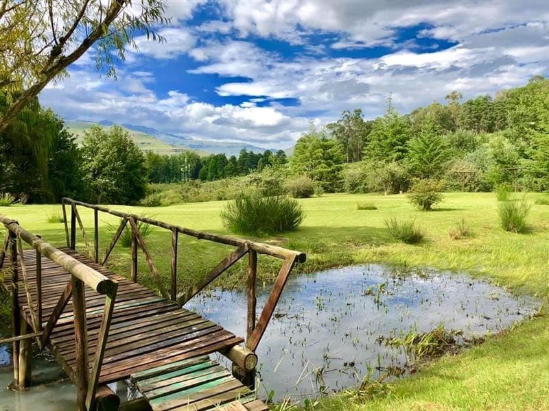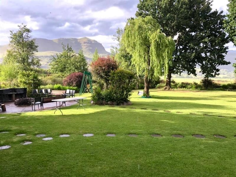 Esigodini is the Zulu name for "Place in the Valley," and it is a delightful holiday cottage nestled in its own valley just off the Drakensberg Gardens road, approximately 1 km from the hotel. About four km from the cottage, there is a convenience store which is well stocked for odds and ends. Both the hotel and Castle Burn have restaurants which offer meals to visiting guests.The cottage is fully equipped and well-appointed with three bedrooms, a separate outside chalet with a large bedroom and bathroom. The complete unit comfortably accommodates 8 guests in the four bedrooms.