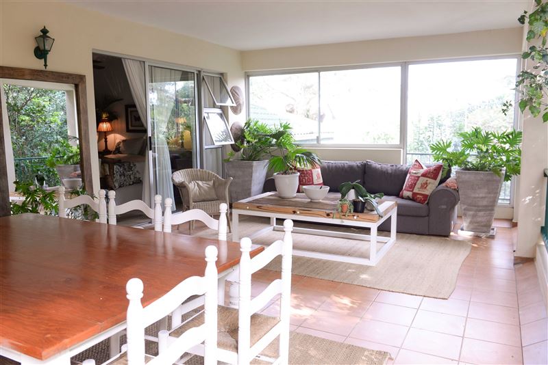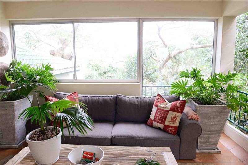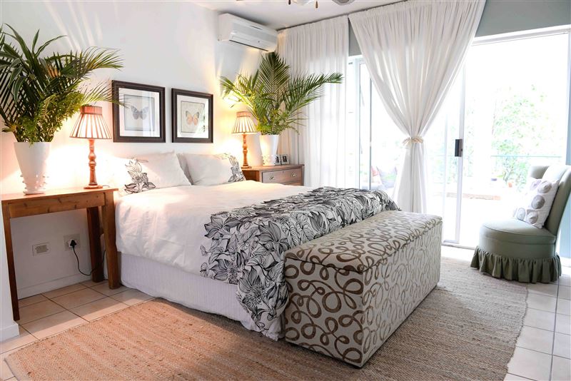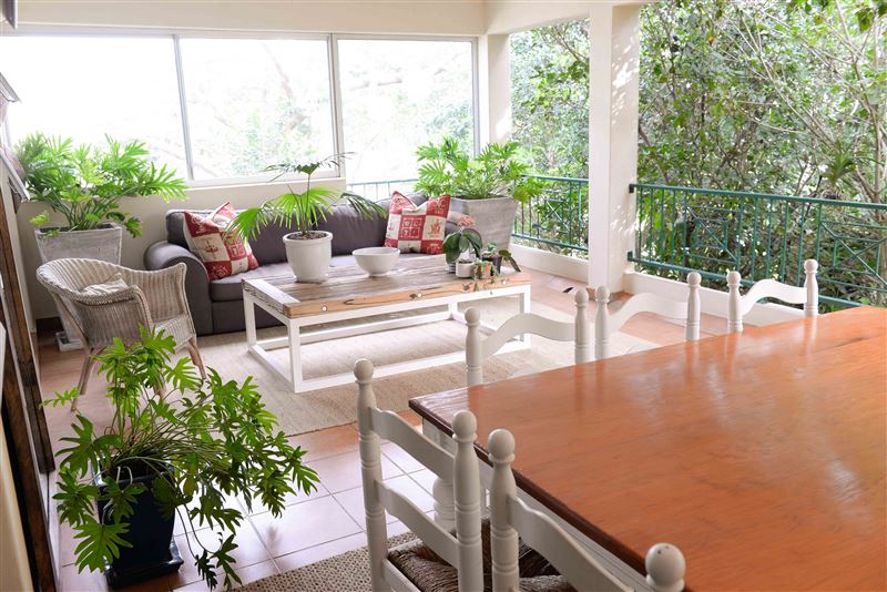 Evergreen is all about family. And the beach. Situated in the lush vegetation of Salt Rock on the Dolphin Coast its the perfect spot for you and your family to recharge your batteries. It is a haven of peace and tranquility away from bustling holiday scene while being only 900 meters from Salt Rocks main beach. This garden apartment is situated in a small and exclusive estate that has extensive beautifully maintained gardens. It can accommodate four guests in two air-conditioned bedrooms that are both fitted with queen size beds. The main bedroom has an en-suite bathroom with a bath and sh