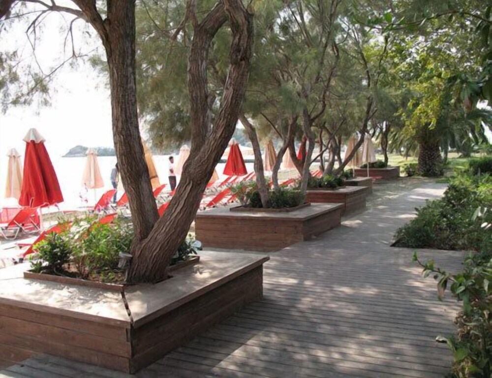 This delightful hotel enjoys a great setting in Eretria, lying close to the area's main attractions. The hotel is located just a few steps away from the beach, sitting on the pedestrian zone of the city. Guests will find themselves just 400 metres away from the heart of the city, where an abundance of shops, restaurants and entertainment venues await. This hotel basks in its seafront setting, blending effortlessly with its surroundings. The interior is tastefully appointed, enjoying a simplistic style which evokes a sense of peace and serenity. The guest rooms are beautifully appointed, providing an oasis in which to relax and unwind at the end of the day. Guests can enjoy the excellent facilities and services that the hotel has to offer, and are assured of a truly memorable stay.