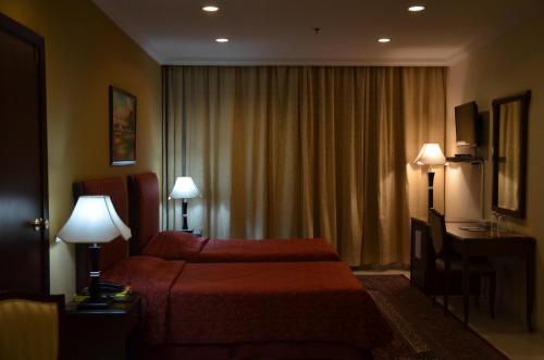 Set in the Deira district of Dubai Ewan Hotel Dubai is 1.4 km from Al Ghurair Centre and 1.9 km from Twin Towers Shopping Centre. The property is around 2.8 km from Grand Mosque and 2.9 km from Textile Souk. The Floating Bridge is 3.6 km from the hotel.All rooms in the hotel are equipped with a TV with satellite channels. Every room comes with a private bathroom with a bath or shower free toiletries and a hair dryer. All units at Ewan Hotel Dubai include air conditioning and a desk.Speaking Arabic and English staff are always on hand to help at the reception.Al Bustan Centre is 5 km from the accommodation while Dubai Frame is 5 km from the property. The nearest airport is Dubai International Airport 5 km from the property.