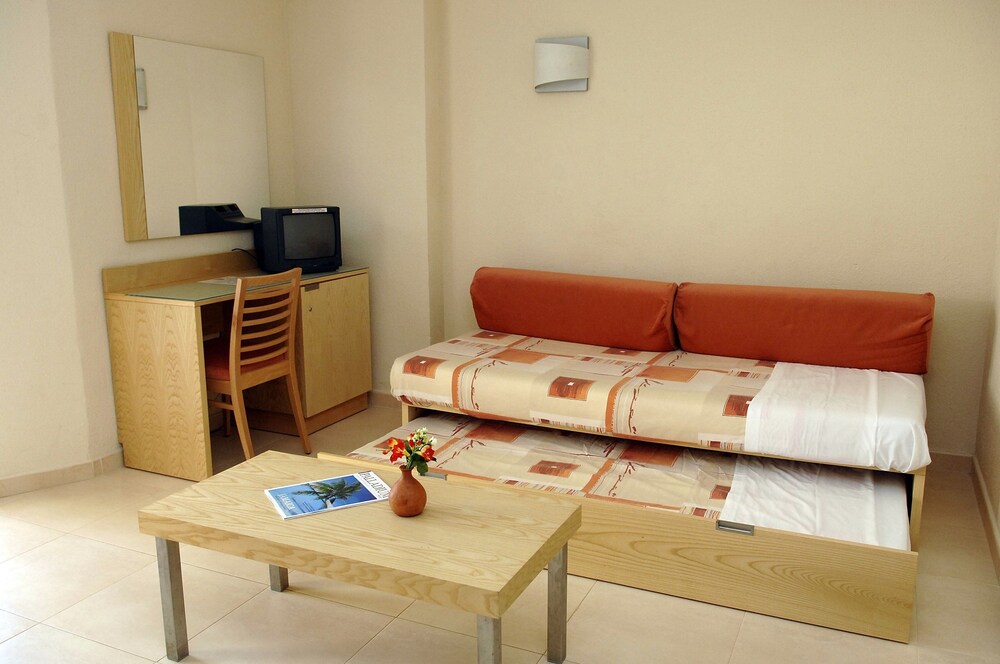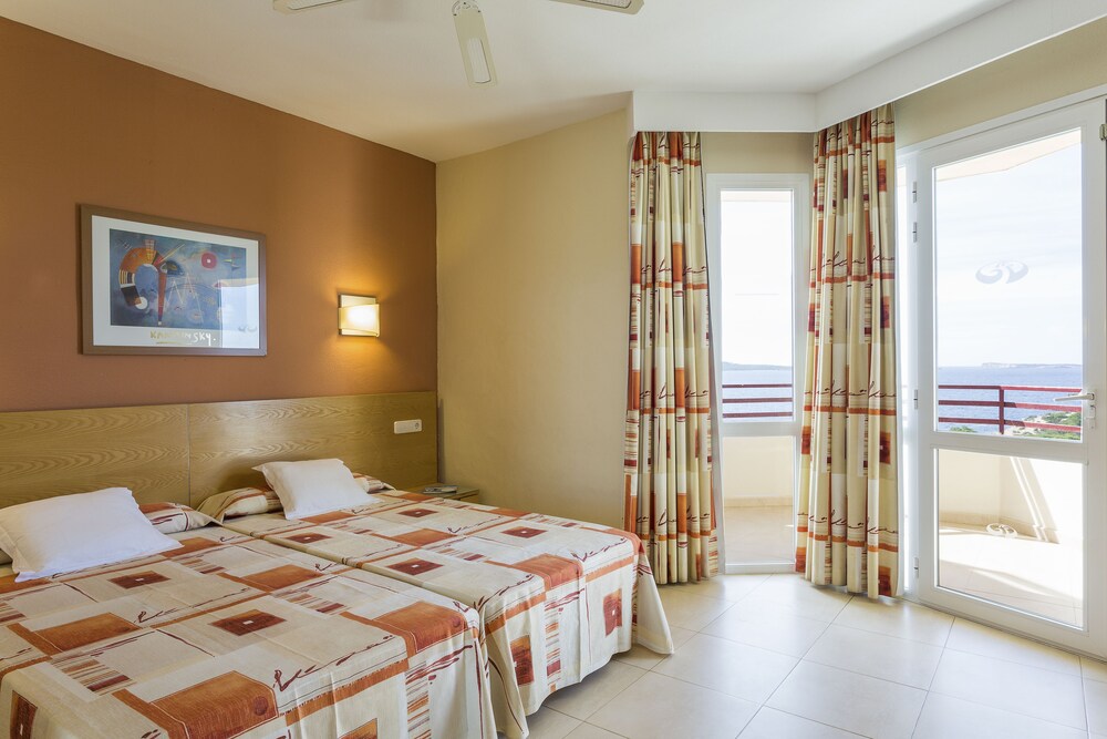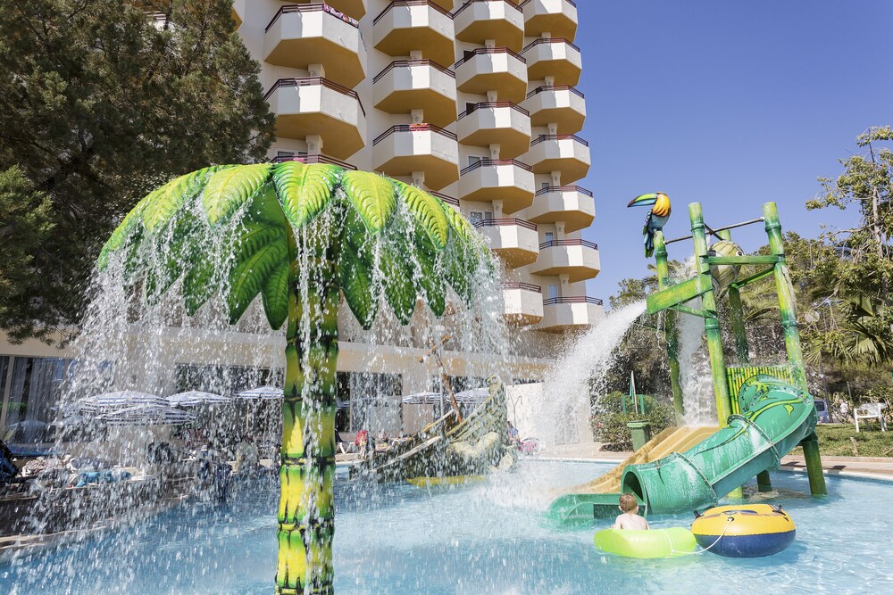 The All Inclusive Fiesta Hotel Tanit is located 1 km from San Antonio with its leisure areas. The hotel has facilities and activities especially for children.The hotel facilities and services include: reception, elevator, Internet access (extra charge), reading lounge, TV and video lounge, lounge bar, restaurant, game room, swimming pool, children’s pool, pool bar, Mini club, playground, table tennis, darts, billiards (extra charge), tennis courts, entertainment program, laundry service (extra charge) and outdoor parking.The rooms are equipped with: A/C, ceiling fan, TV, telephone, safe (extra charge), hairdryer, iron (with deposit) and balcony or terrace. Triples and quadruples with sofa beds.In case of AI bookings:The All Inclusive-concept includes all meals (breakfast, lunch, dinner and snacks) and mealtime drinks such as soft drinks, beer, wine, water and alcoholic drinks, all of local brands. Drinks are served from morning until late evening (approx until 22.-24.00 hrs). Opening times vary between different hotels. In certain hotels the activities program is also included.Address: Crta. Cala Gració s/n, 07820 San Antonio, Ibiza, Spain
