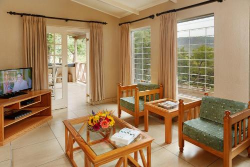 Waterberry Hill is situated within 5 km from Hazyview. The resort is surrounded by indigenous bush and features a variety of birds and small animals. Free WiFi is available.The bright and spacious chalets feature a private entrance and have an open plan lounge and dining room a fully equipped kitchen and a furnished patio offering views of the garden. They also come equipped with satellite TV DVD player and a safe.At Waterberry Hill there are BBQ facilities on site. A number of restaurants can be found within a 10-minute drive. Activities include nature walks tennis and mini golf.Guests can relax by the poolside or explore the surroundings ranging from Kruger Park’s Phabeni Gate and the scenic Panorama Route which can be reached in a 1 hour’ 45 minutes’ drive.The resort is 52 km from Kruger Mpumalanga International Airport.
