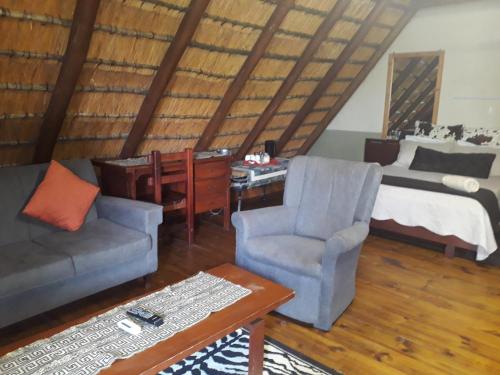 The Fish Eagle Inn is situated 500 m from Richards Bay Airport, surrounded by an indigenous forest garden. The Inn offers five tastefully furnished rooms under cool thatch, each with en-suite bathroom and private entrance.