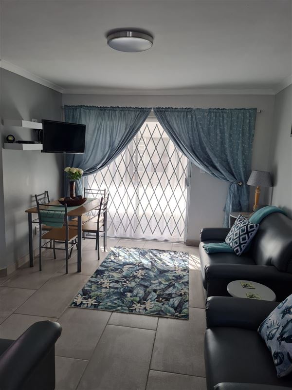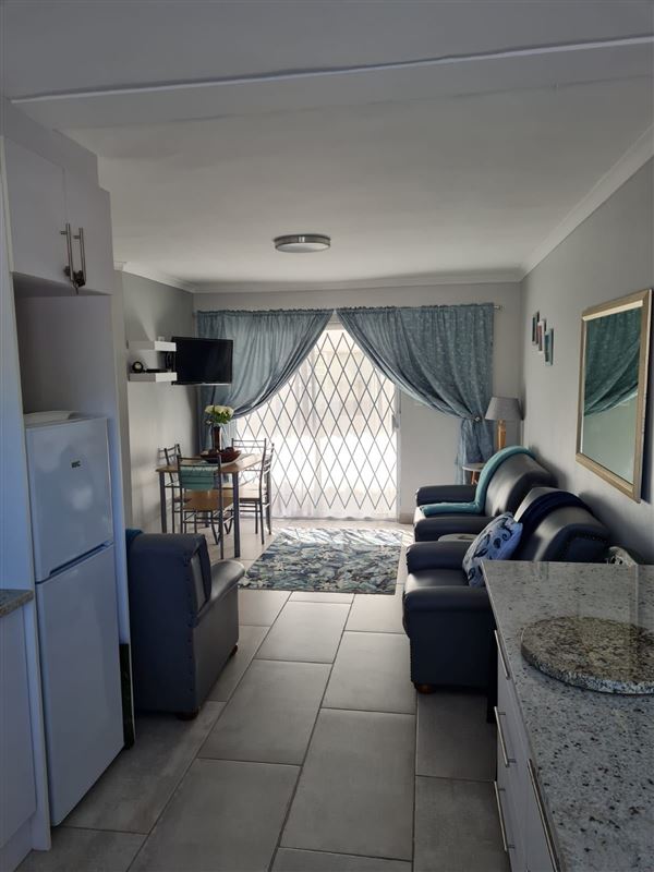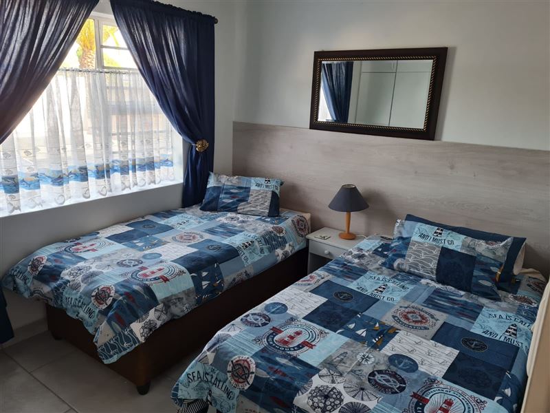 Flamingo Park is a two-bedroom, ground-floor apartment in Langebaan. It is set in a secure complex, only 100 metres from the Langebaan lagoon on the Cape West Coast.This apartment is well-appointed and has a lounge and dining area, a fully equipped kitchen with a stove, an oven, a fridge with a freezer and a microwave. The two bedrooms feature a double bed, two single beds and shares a full bathroom. DStv is also active on the premium package. Although this is a self catering unit we supply fitted sheets, duvets, pillow cases and pillows. Please be advised that no towels will be su