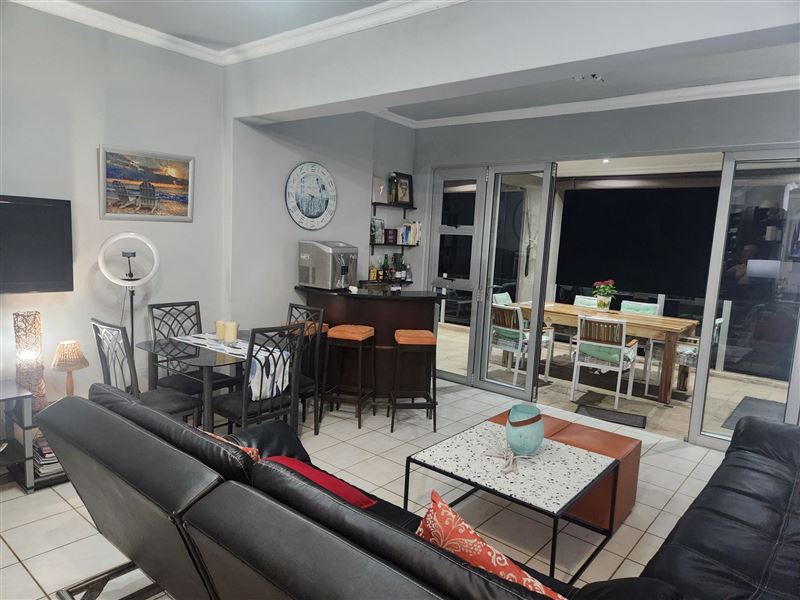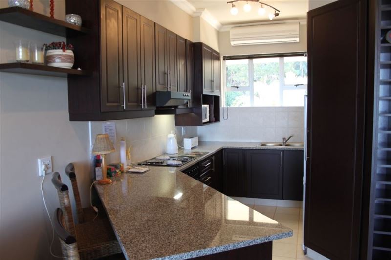 Boasting 180 degree sea and town views, the Flat 8 Safari is located in a secure complex in Southbroom within a short 500 m walk of a beautiful beach. Positioned on the third floor, this air-conditioned apartment offers sunny open-plan living. In an L-shaped layout the kitchen is fully equipped and includes a washing machine and tumble dryer. Leading from the kitchen the modern living room includes a dining area and lounge with DStv. The lounge opens through fold-away sliding doors onto an expansive balcony with gas braai and outside seating.Accommodation sl