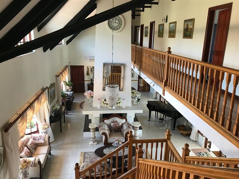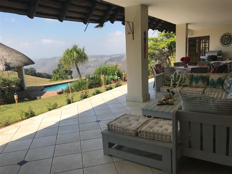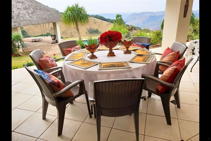 Forest Dream House offers self-catering accommodation and is situated in the picturesque area of Forest Hill, Kloof. The property is situated approximately 35 km from the vibrant seaside of Durban.This double-storey holiday house comprises of 6 luxury air-conditioned bedrooms. The main, downstairs and fifth bedroom each have a queen-size bed; the third bedroom is equipped with a king-size bed and a sleeper couch; the fourth room has 2 single beds, and the sixth has a double bed. The main en-suite and guest bathroom has a shower and bath. All other bathrooms shower only. Four of the